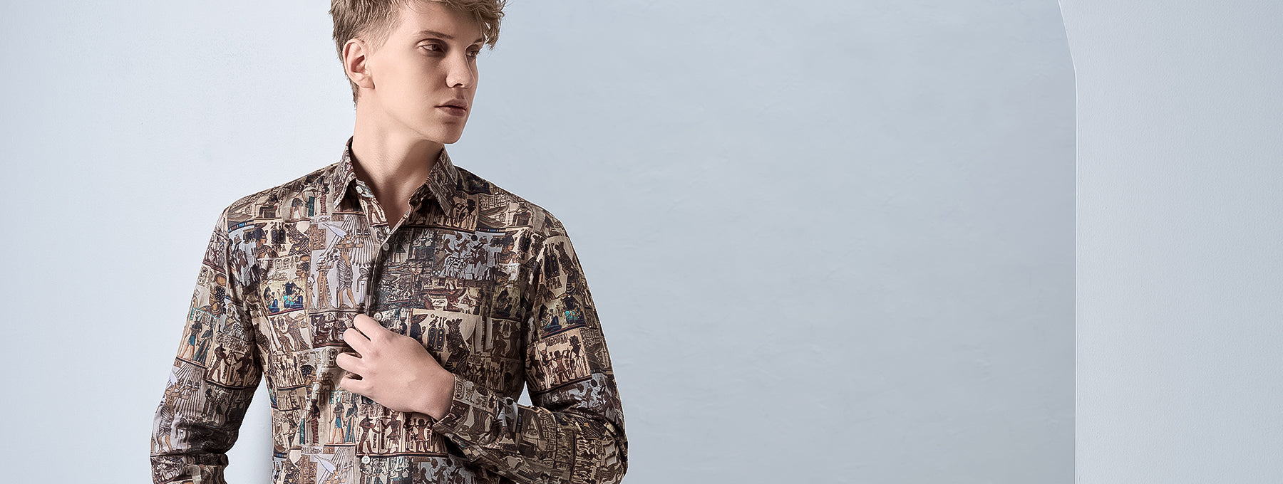 Marivon Tumbleweed Peach Printed Anchor Printed Luxurious Linen Dress Shirt