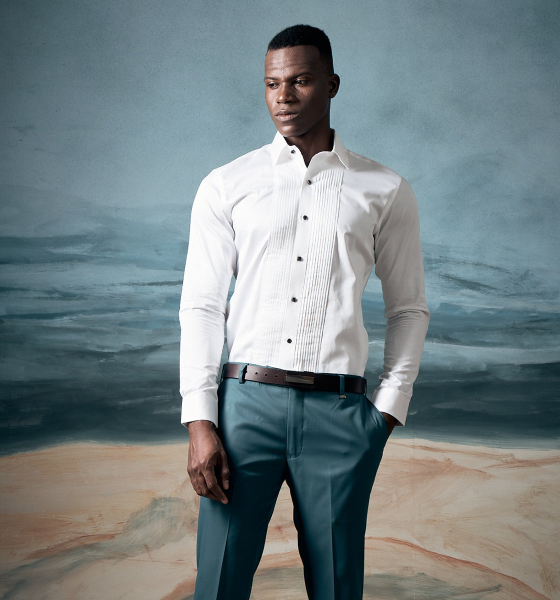 Azzorio-Catalina Blue And Bright White Candy Striped Subtle Sheen Super Soft Premium Cotton Dress Shirt