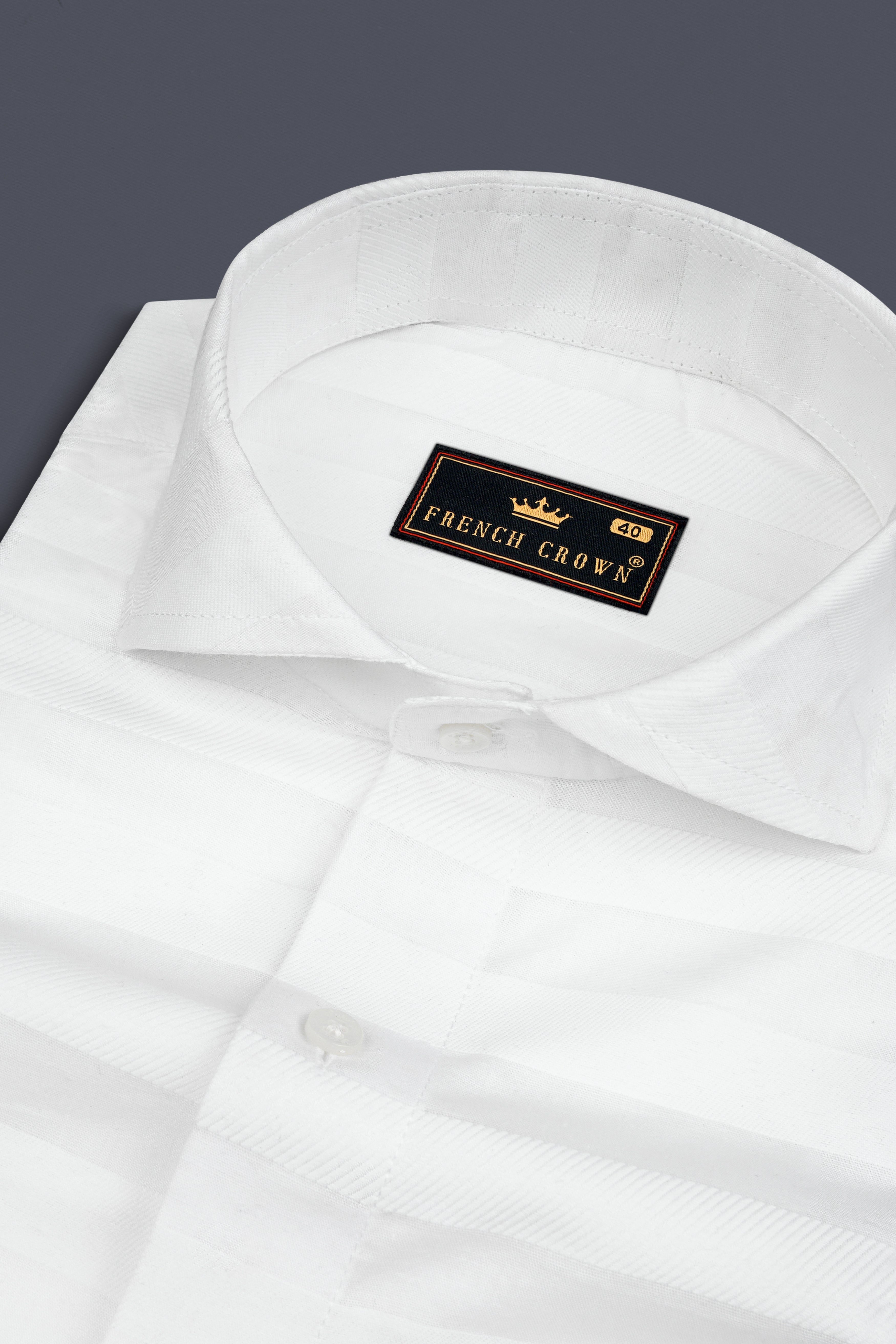Bright White Striped Dobby Textured Premium Giza Cotton Shirt