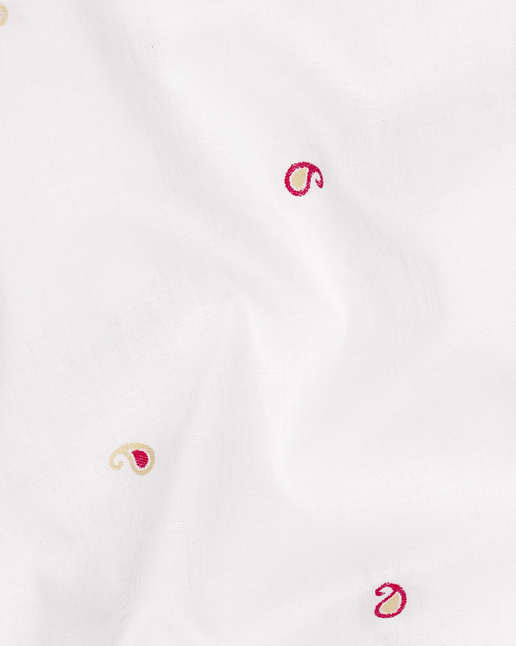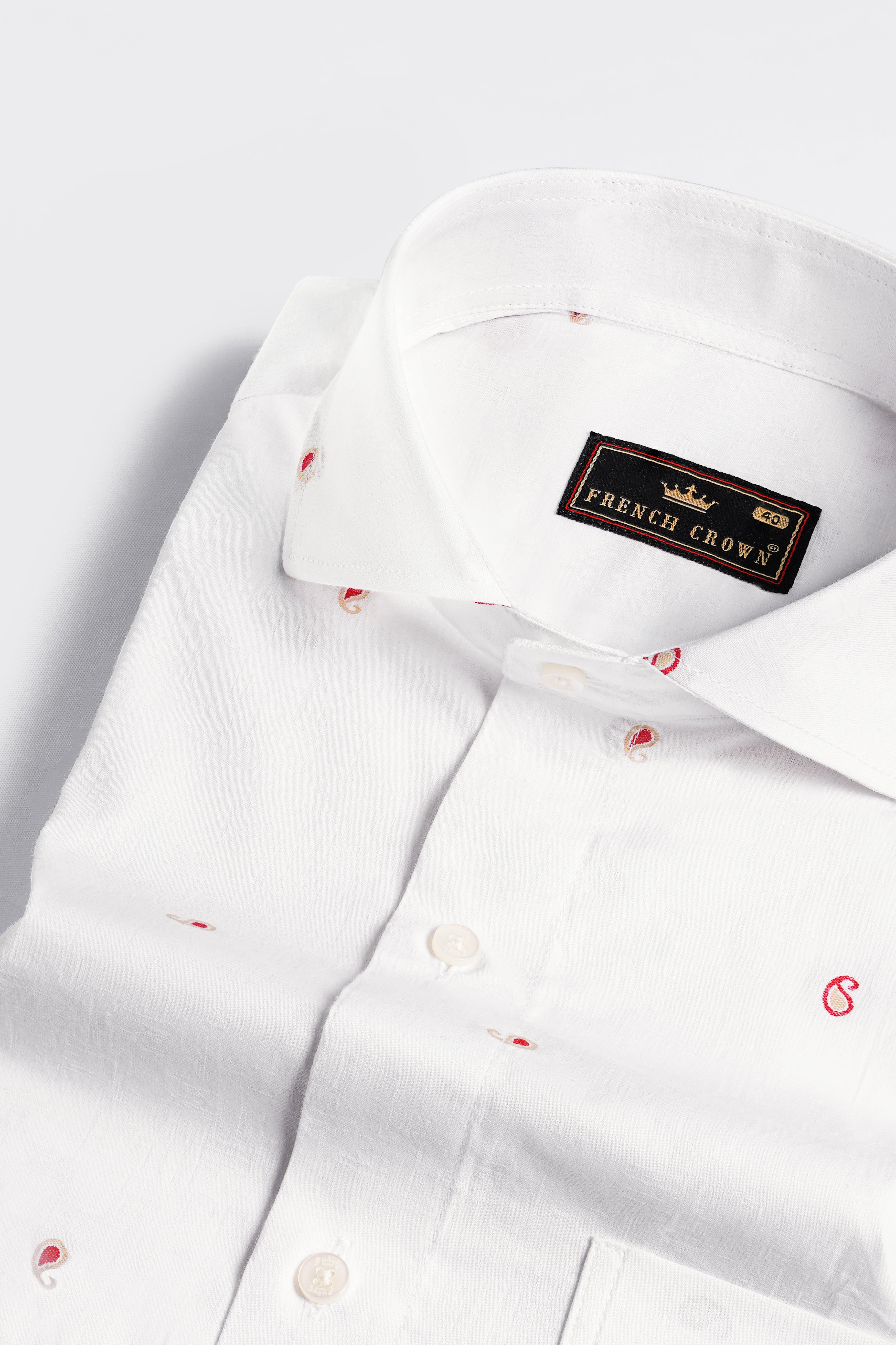 Bright White Paisley Jacquard Textured Premium Giza Cotton Shirt