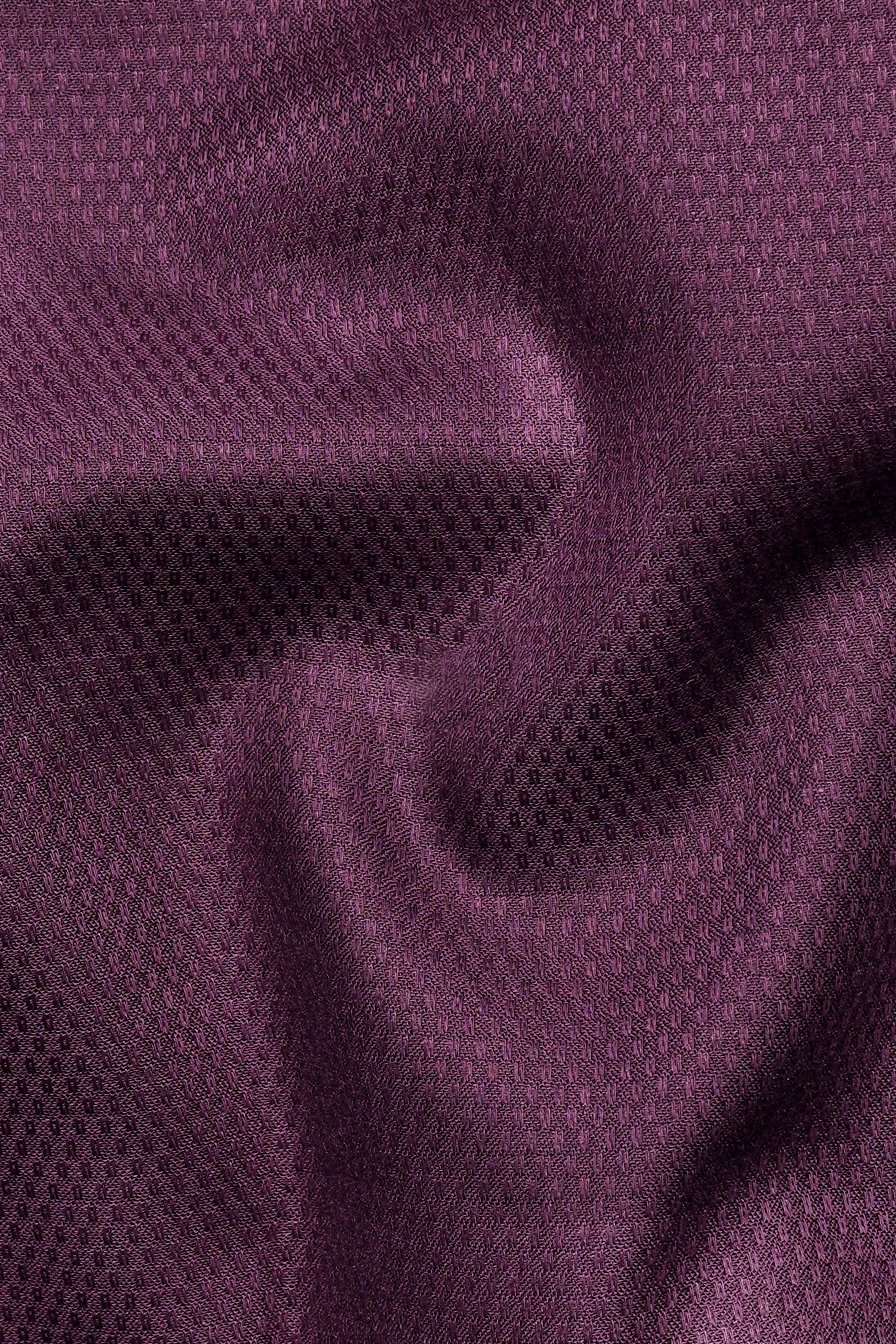 Plum Purple Embroidered Dobby Textured Premium Giza Cotton Designer Shirt
