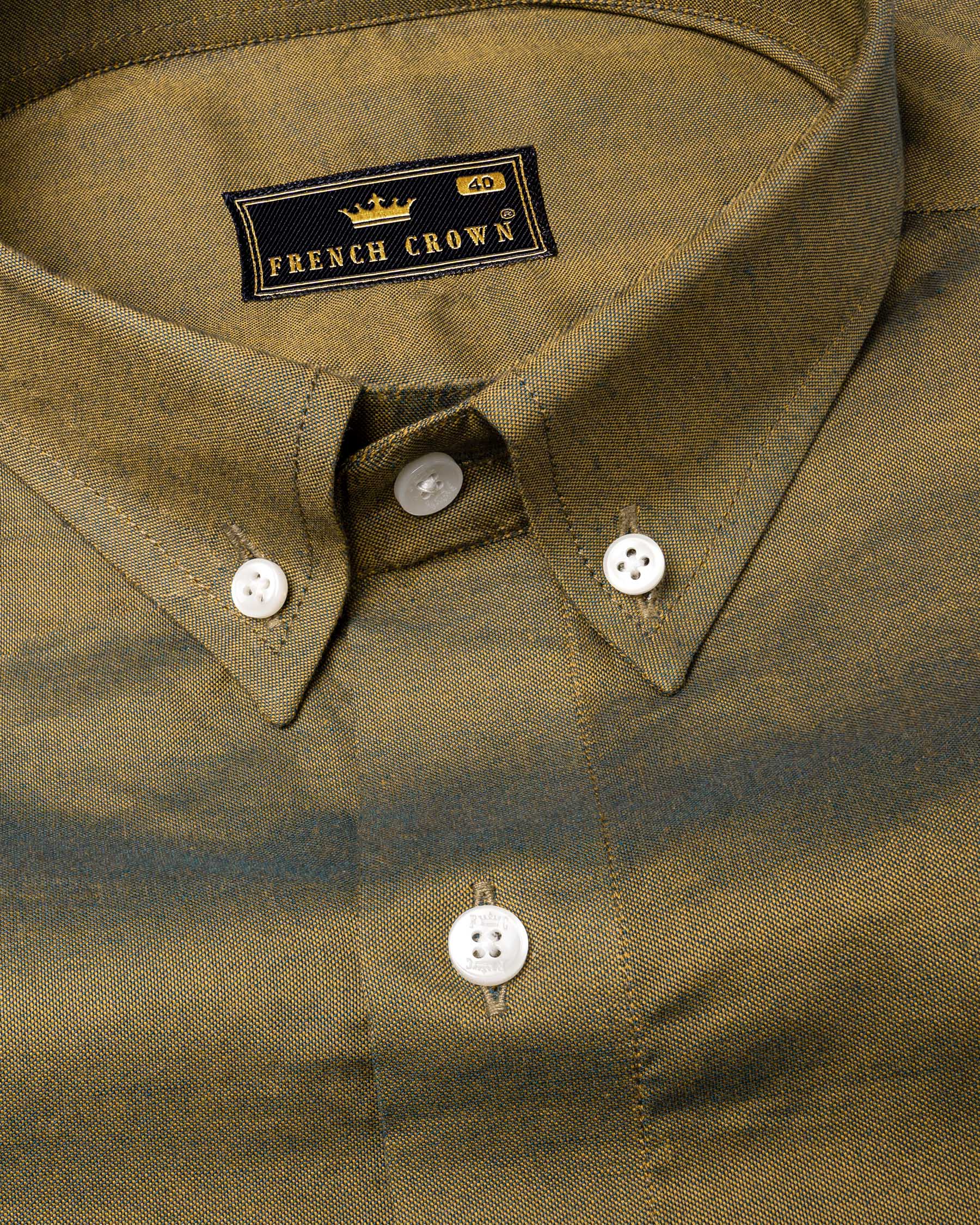 Asparagus Green Checked Dobby Textured Premium Giza Cotton Shirt