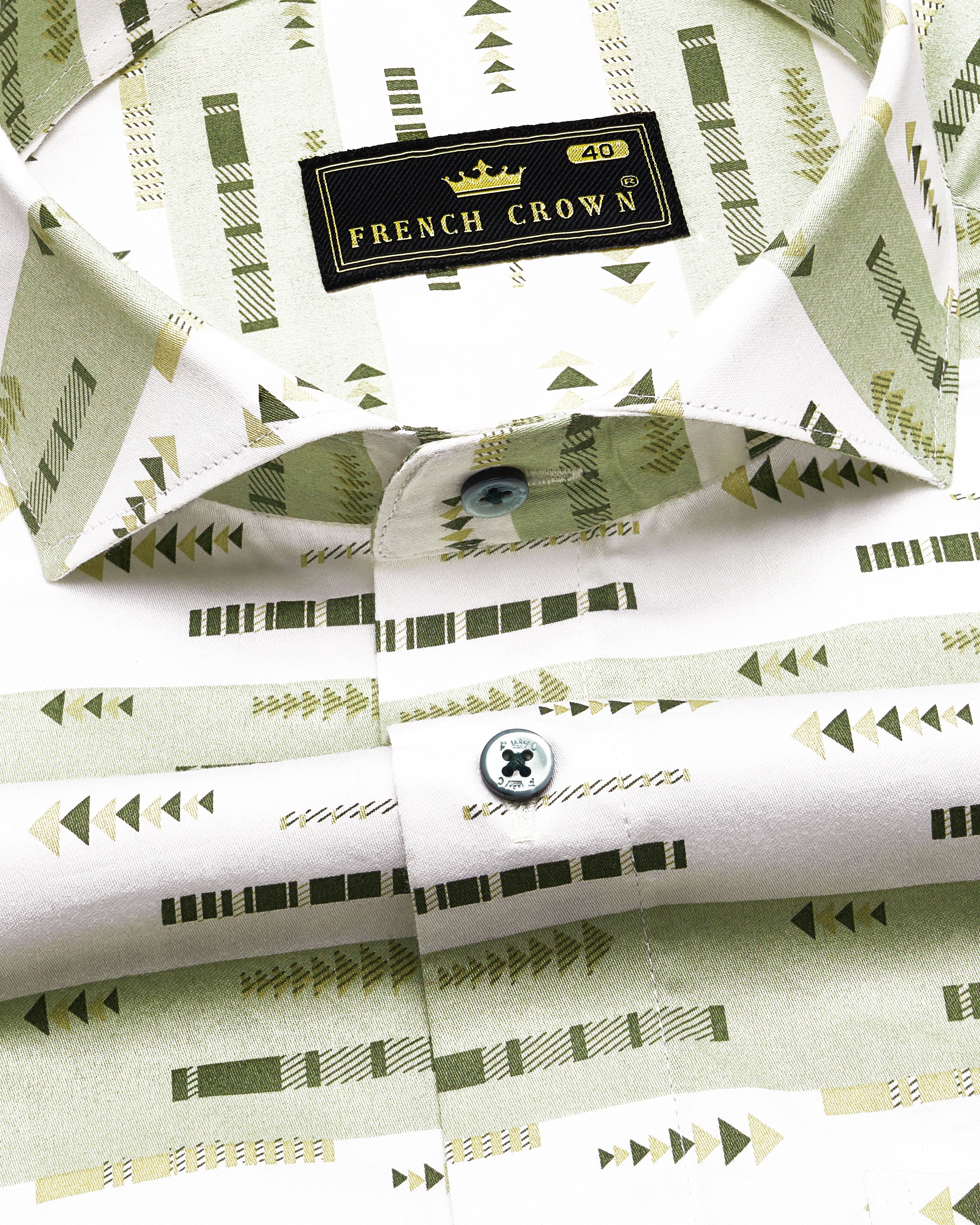 Bright White and Pixie Green Printed Super Soft Premium Cotton Shirt