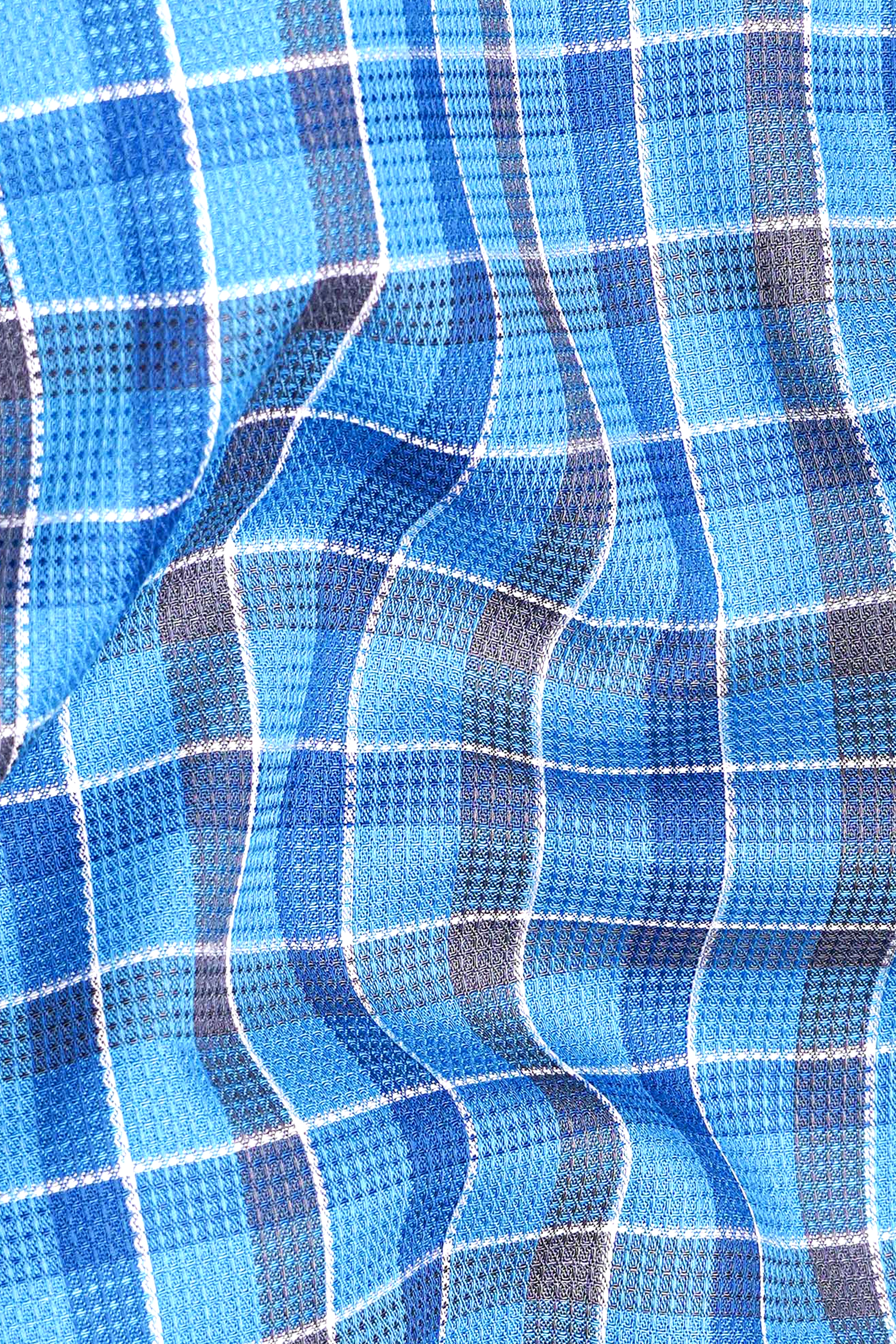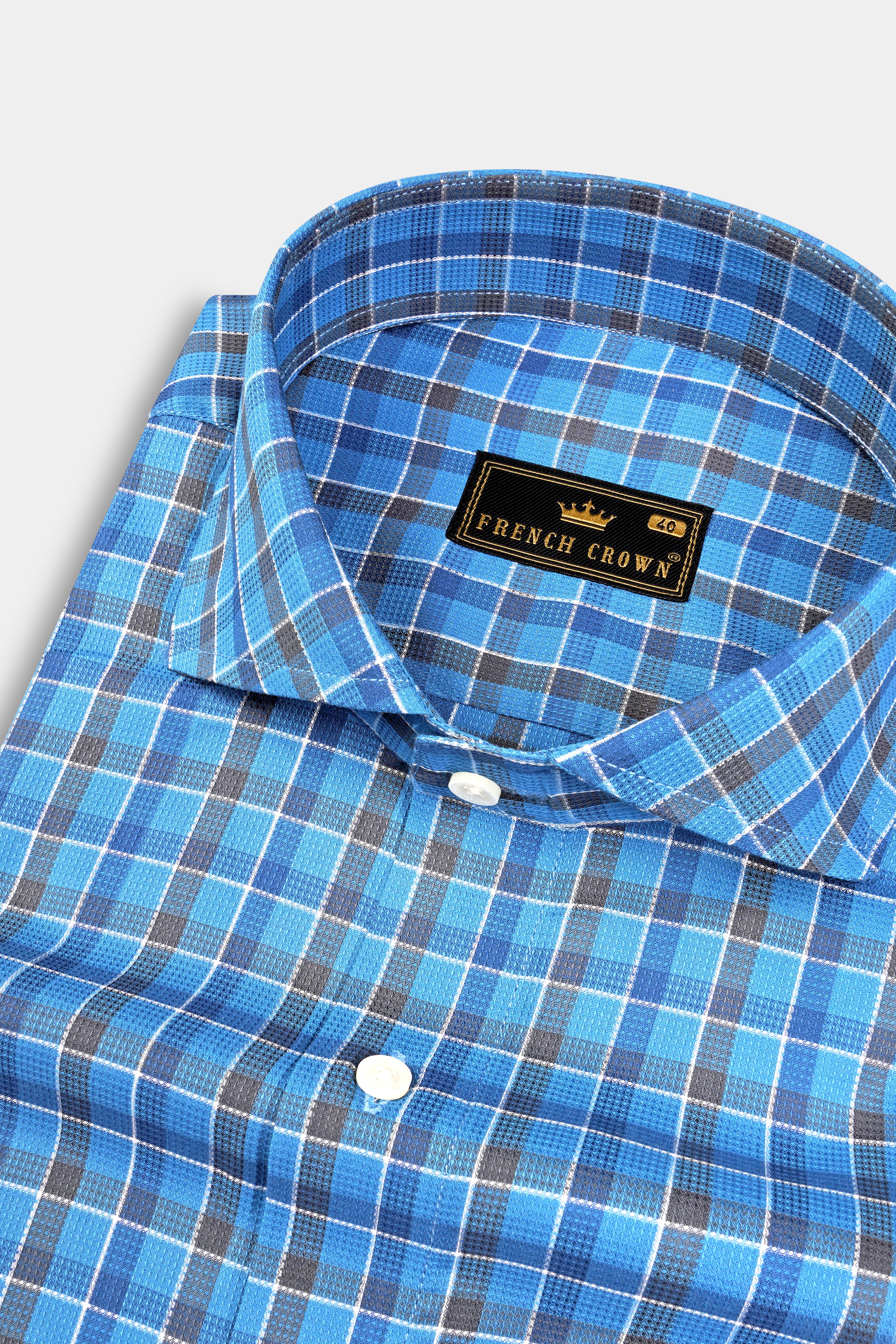 Malibu and St Tropaz Blue Plaid Dobby Textured Premium Giza Cotton Shirt