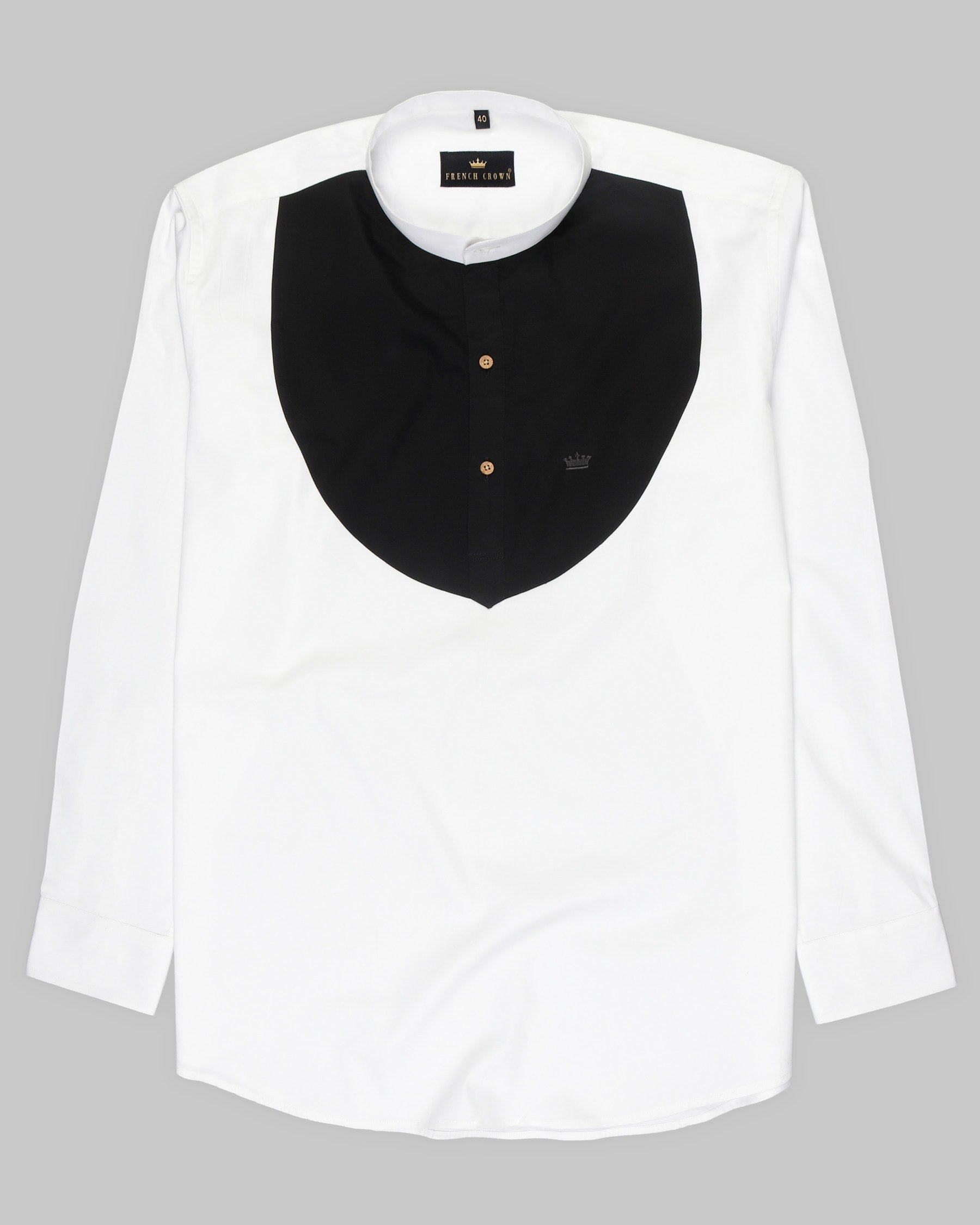 Bright White Subtle Sheen with Black Patch Patterned Super Soft Giza Cotton SHIRT