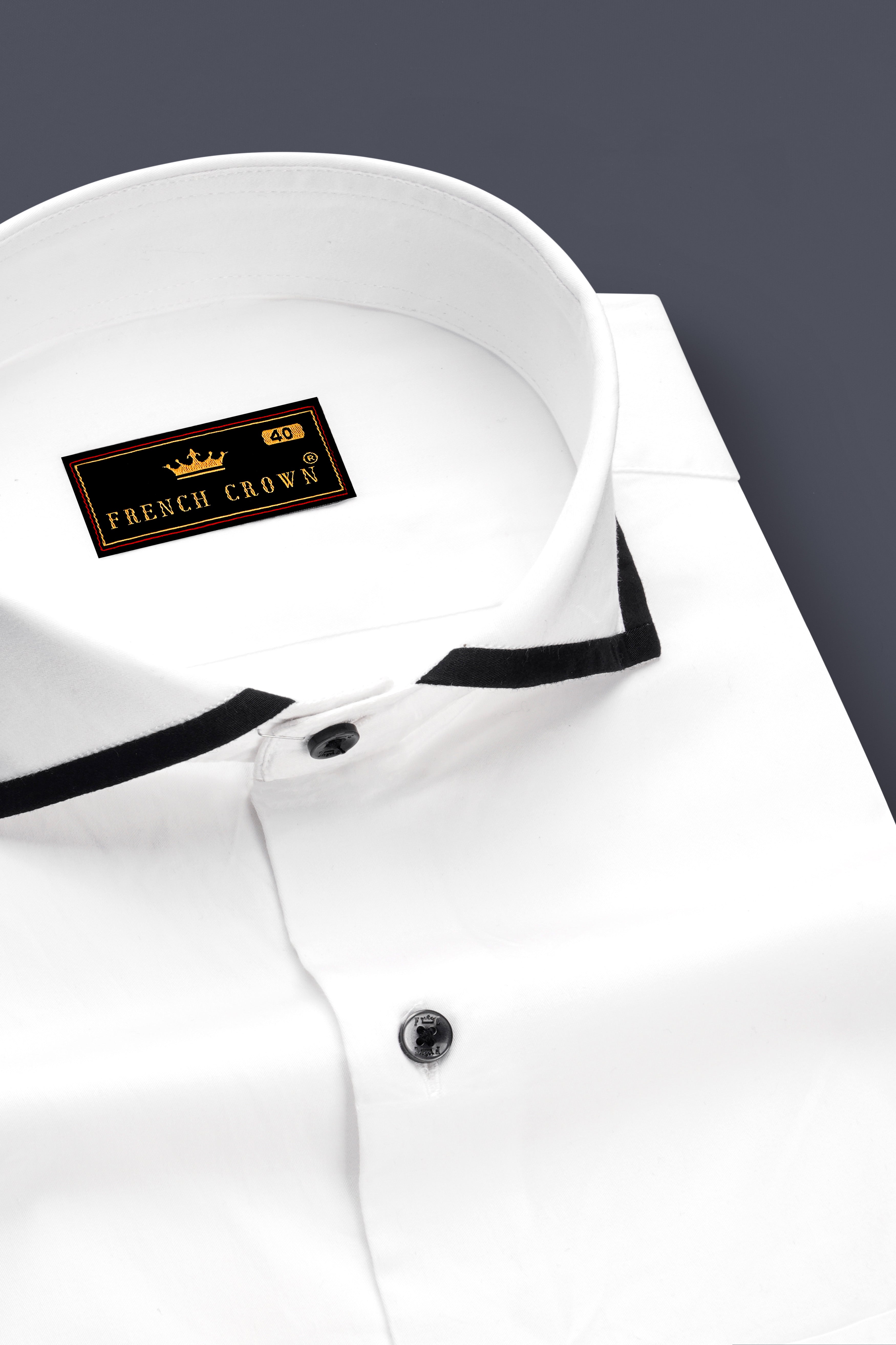 Bright White Subtle Sheen With Collar Detail Giza Cotton ShirtBright White Subtle Sheen With Collar Detail Giza Cotton Shirt