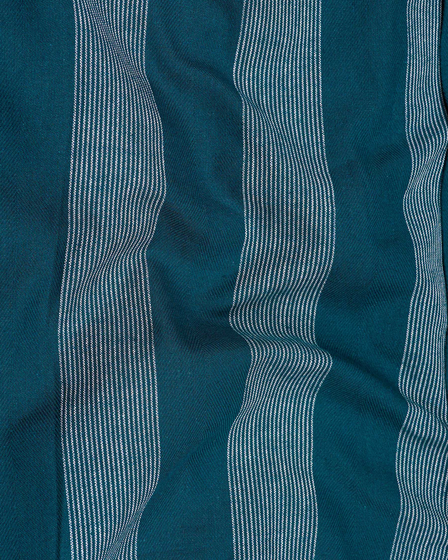 Cyprus Sea Blue with Bright White Striped Herringbone Premium Cotton Shirt