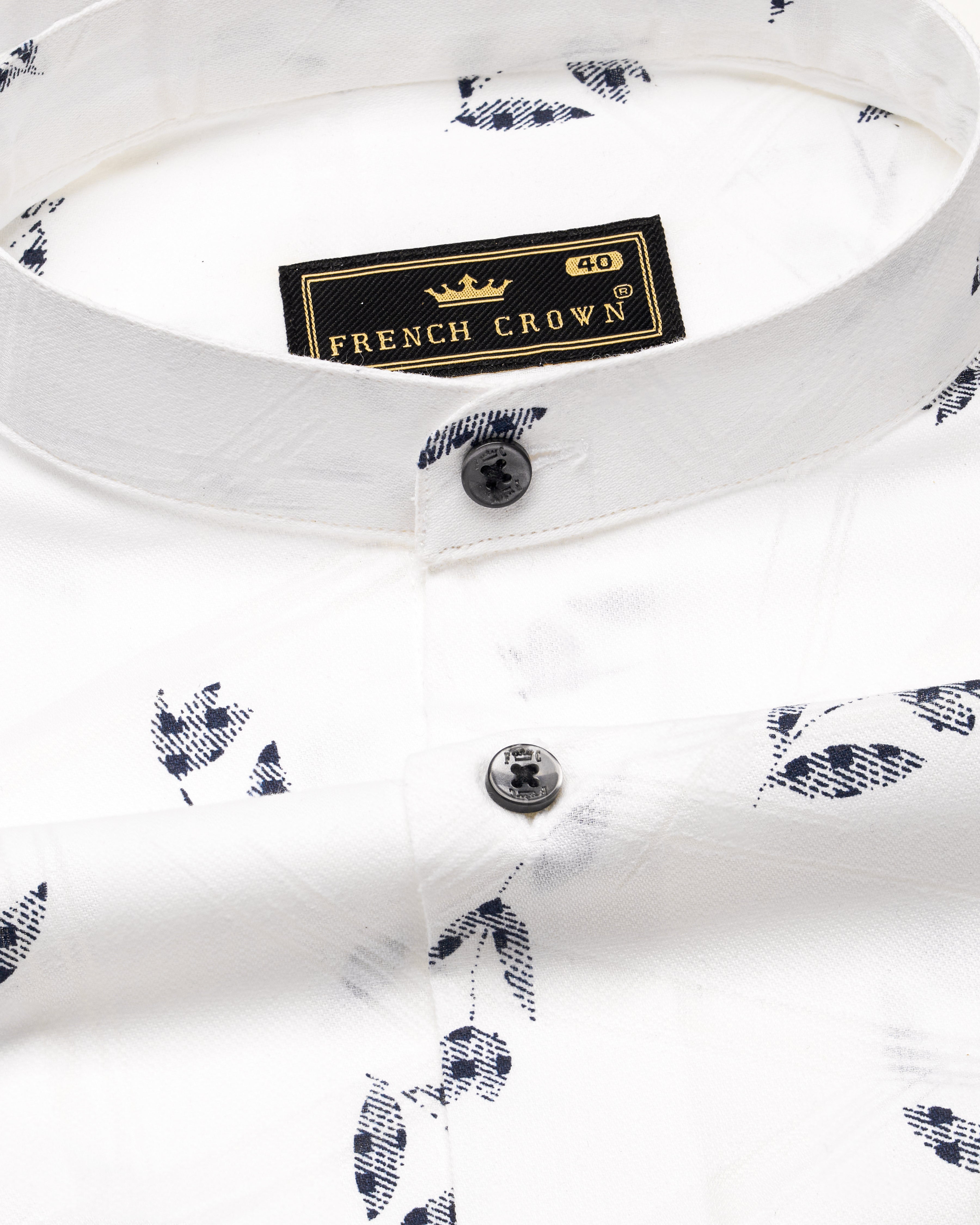 White and Chambray Blue Leaf Printed Premium Cotton Kurta ShirtWhite and Chambray Blue Leaf Printed Premium Cotton Kurta Shirt