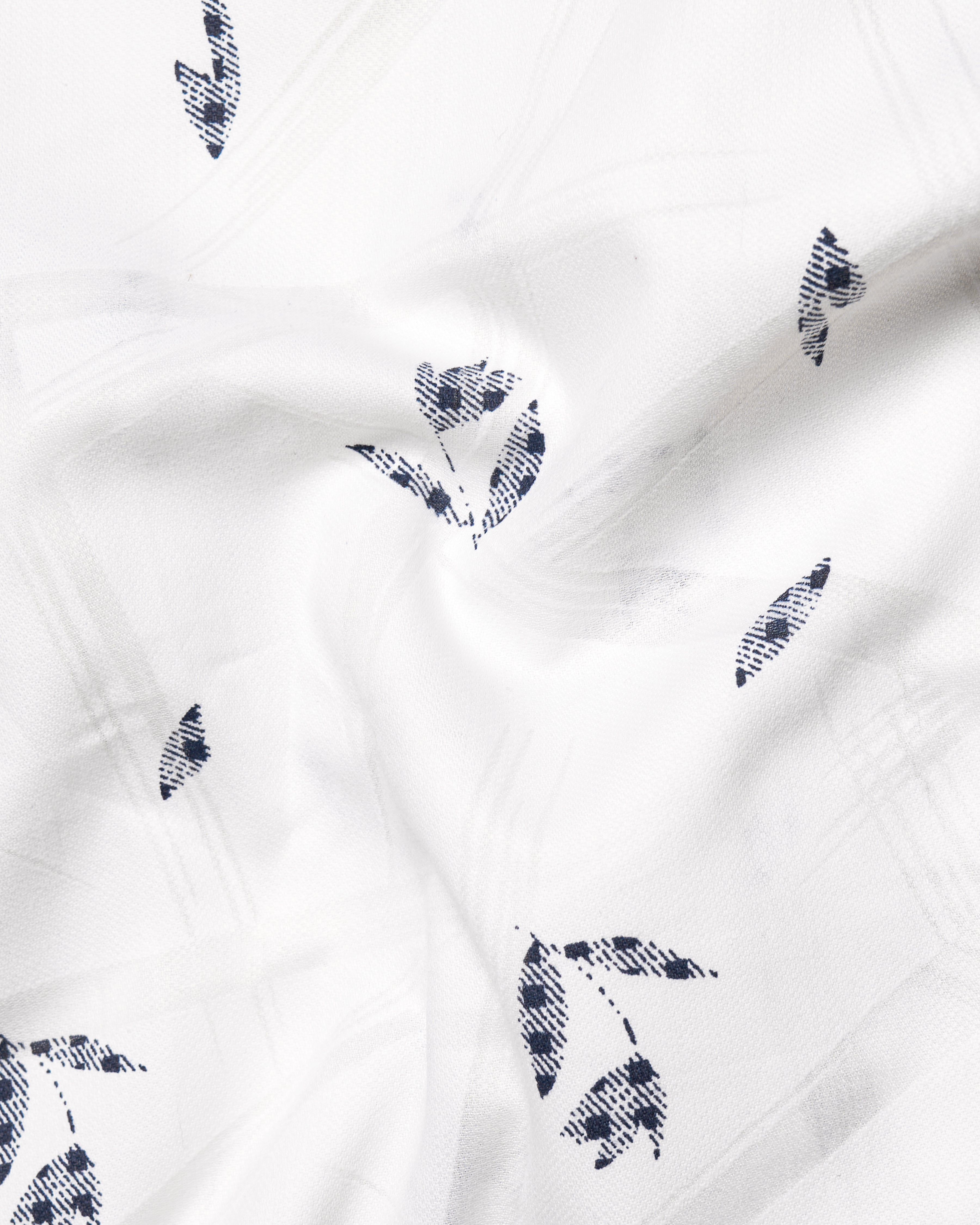 Bright White Leaves Dobby Textured Premium Giza Cotton Shirt