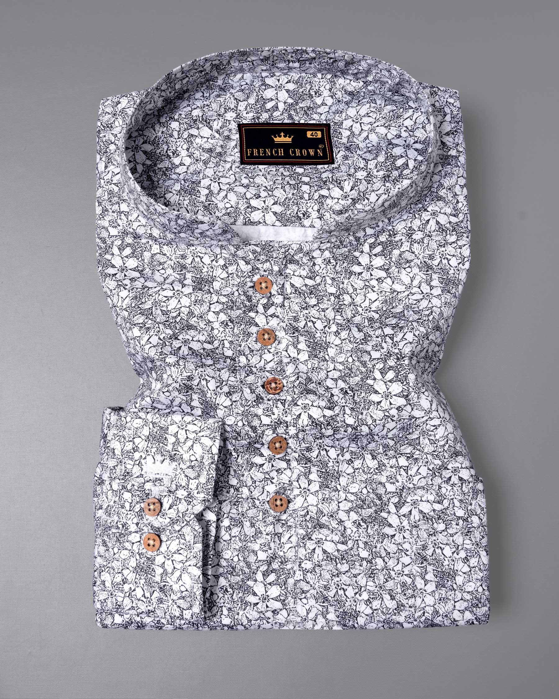 Jade Black and Gallery Gray Floral Printed Super Soft Premium Cotton Kurta Shirt