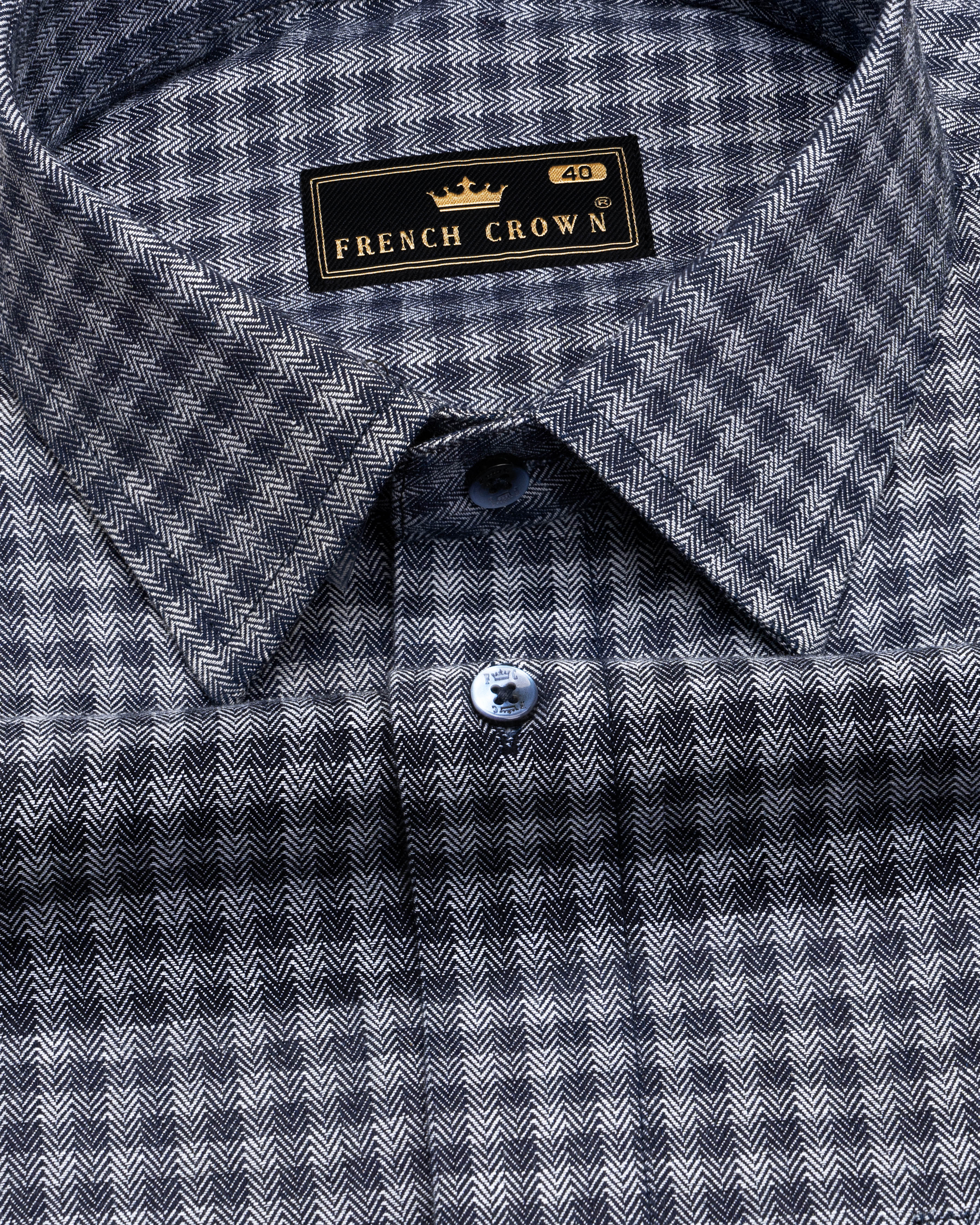 Venus Gray and Black Gingham Checkered Herringbone Shirt