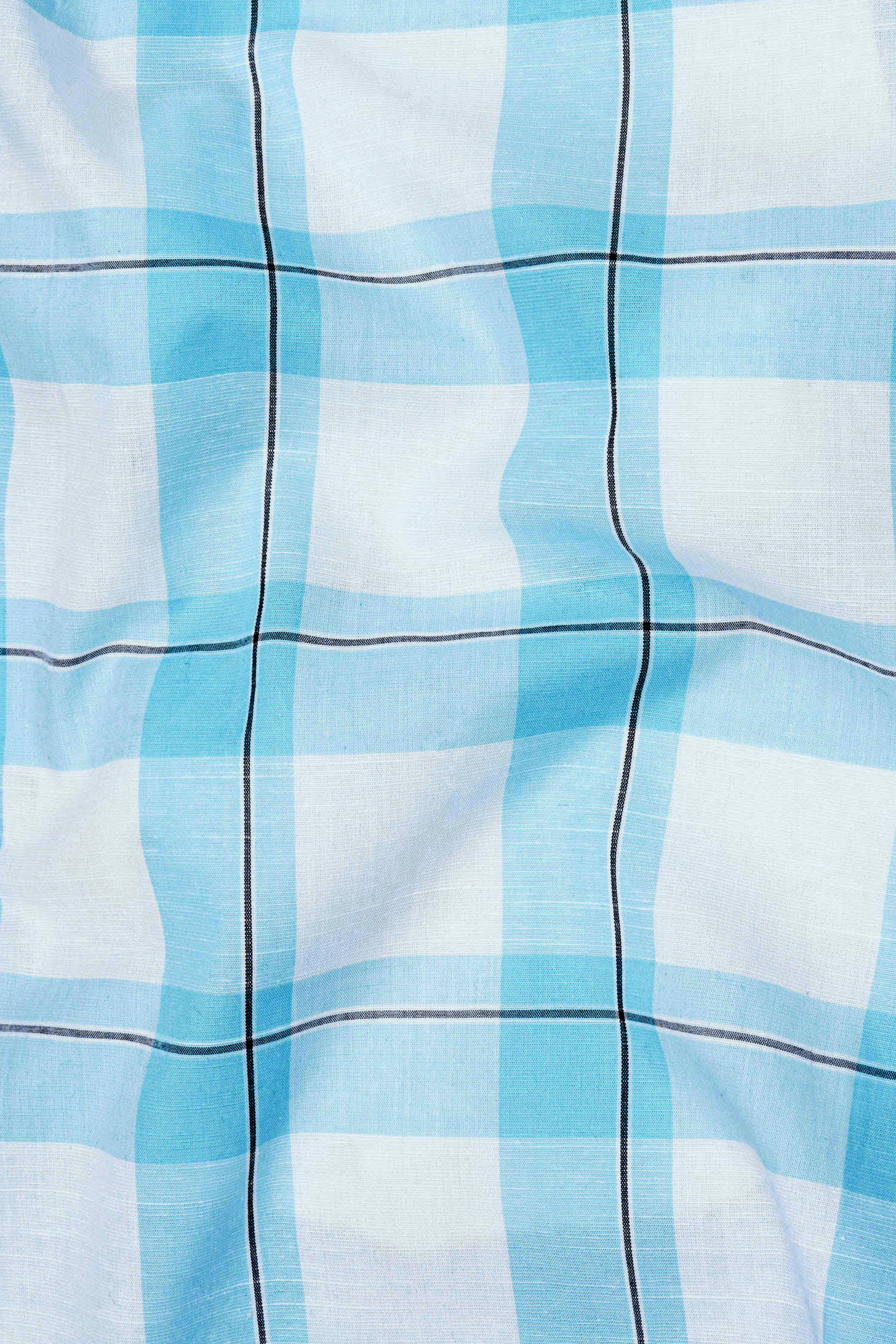 Dark Aqua White with Mariner Blue Twill Plaid Premium Cotton ShirtDark Aqua White with Mariner Blue Twill Plaid Premium Cotton Shirt