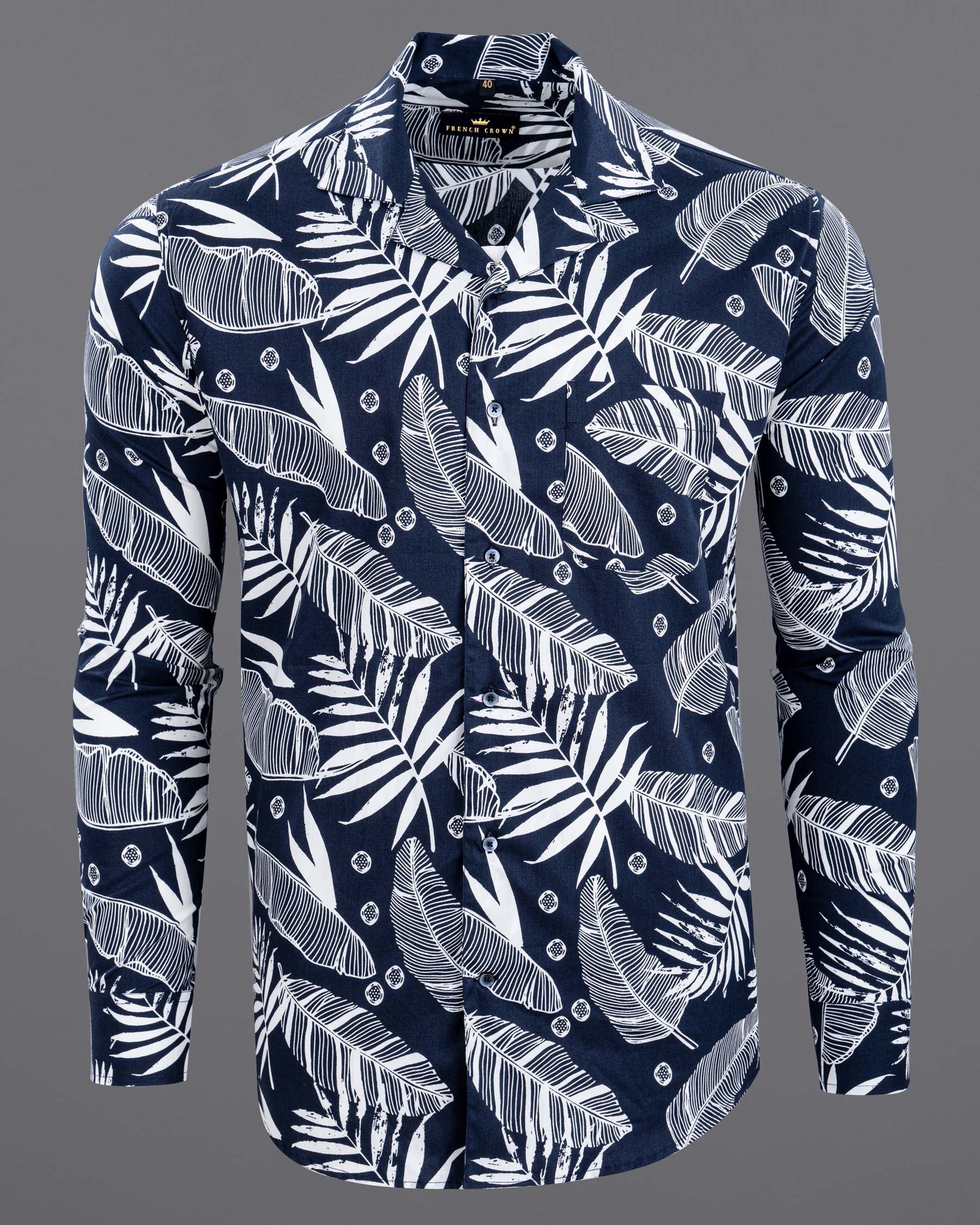 Bunting Blue Leaves Printed Premium Cotton Shirt