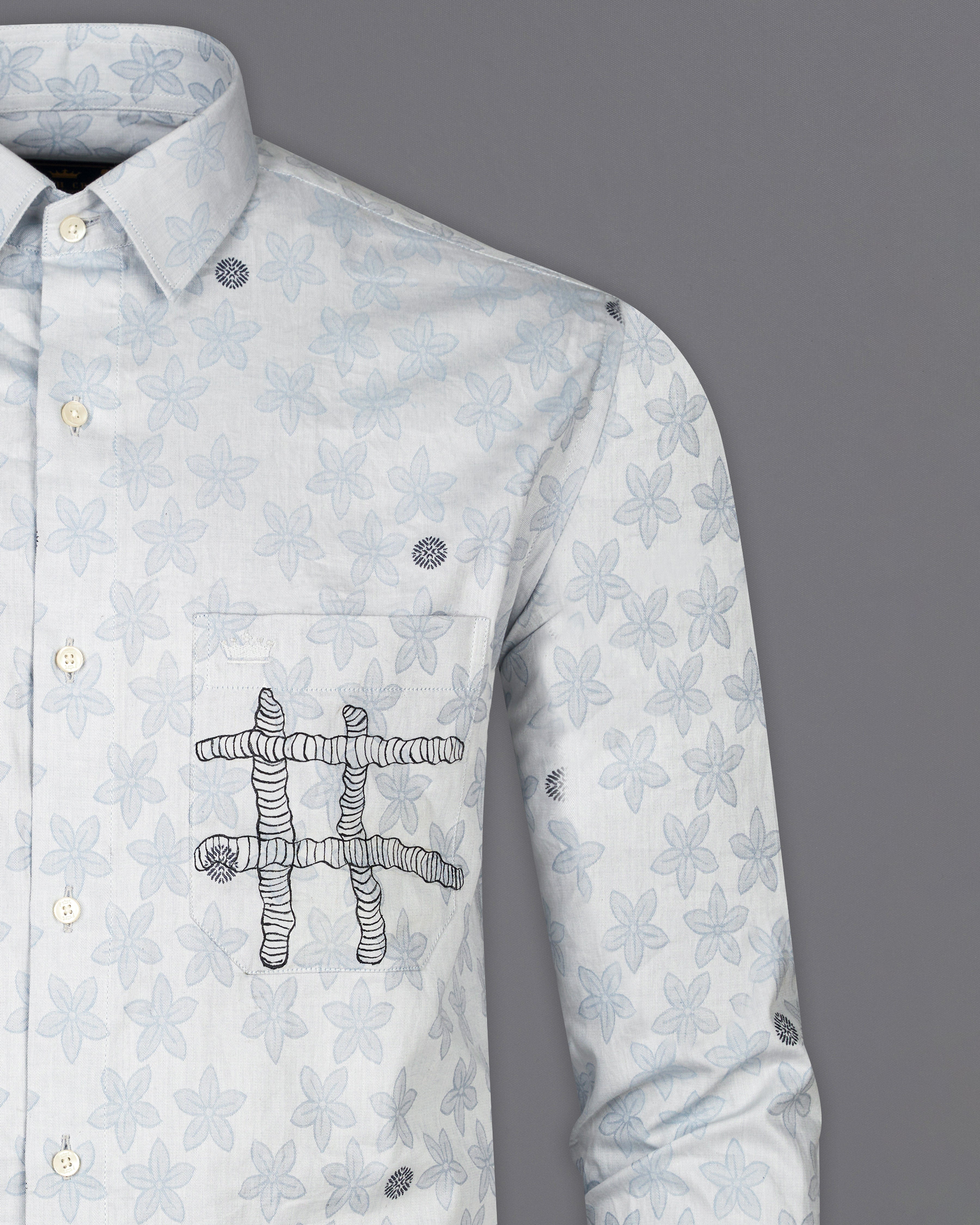 Chambray Blue with Multicolour Printed Premium Cotton Shirt