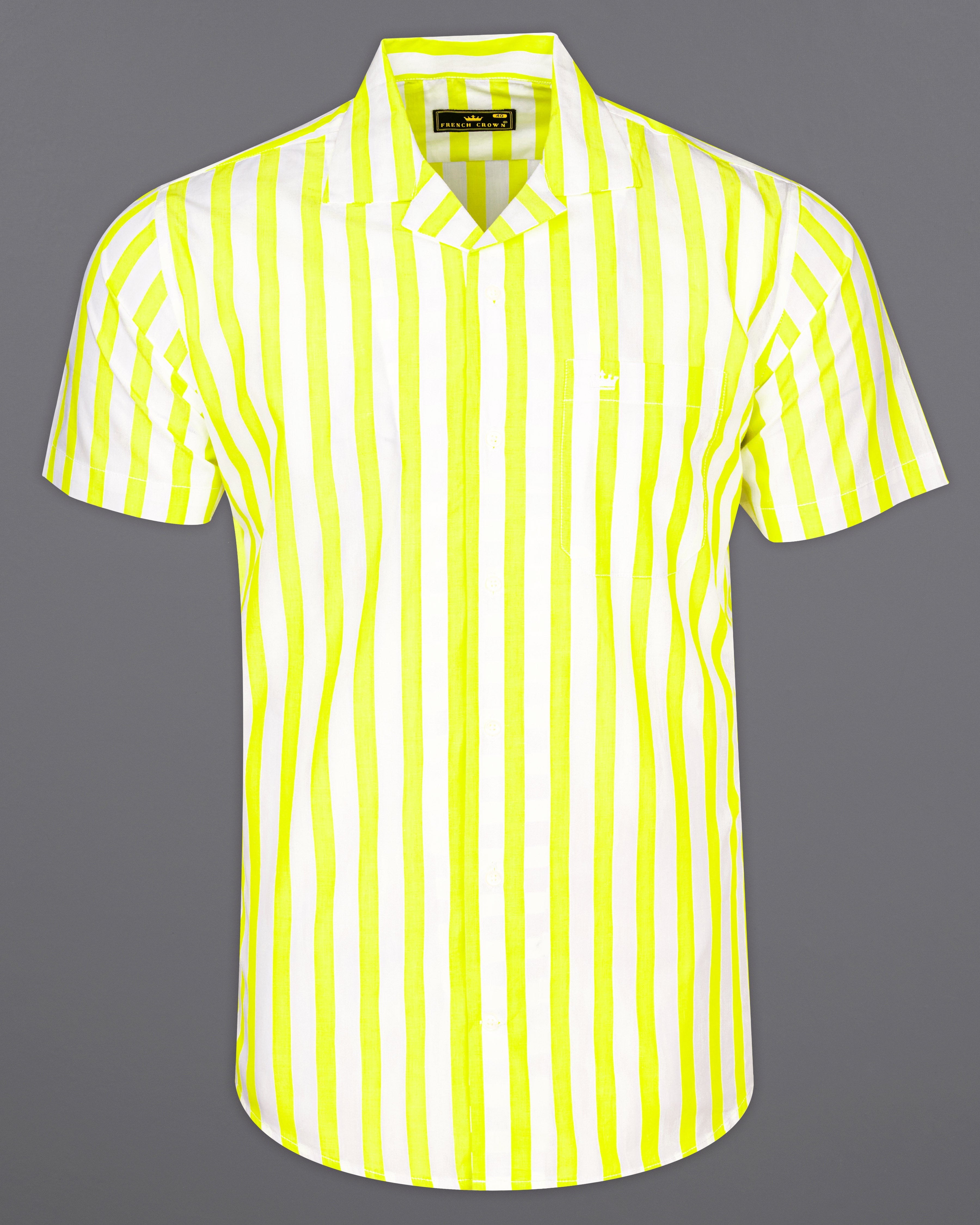 Custard Neon Yellow with White Striped Half-Sleeved Premium Cotton Shirt 9717-CC-SS-38, 9717-CC-SS-39, 9717-CC-SS-40, 9717-CC-SS-42, 9717-CC-SS-44, 9717-CC-SS-46, 9717-CC-SS-48, 9717-CC-SS-50, 9717-CC-SS-52Custard Neon Yellow with White Striped Half-Sleeved Premium Cotton Shirt 9717-CC-SS-38, 9717-CC-SS-39, 9717-CC-SS-40, 9717-CC-SS-42, 9717-CC-SS-44, 9717-CC-SS-46, 9717-CC-SS-48, 9717-CC-SS-50, 9717-CC-SS-52
