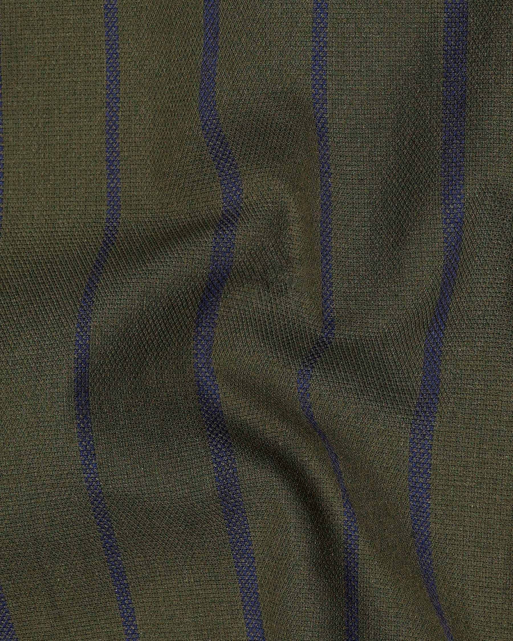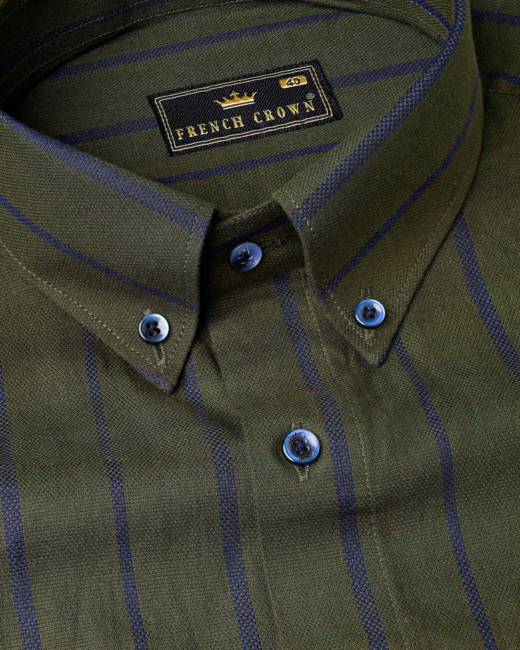 Taupe Green With Valhalla Blue Striped Dobby Textured Premium Giza Cotton Shirt