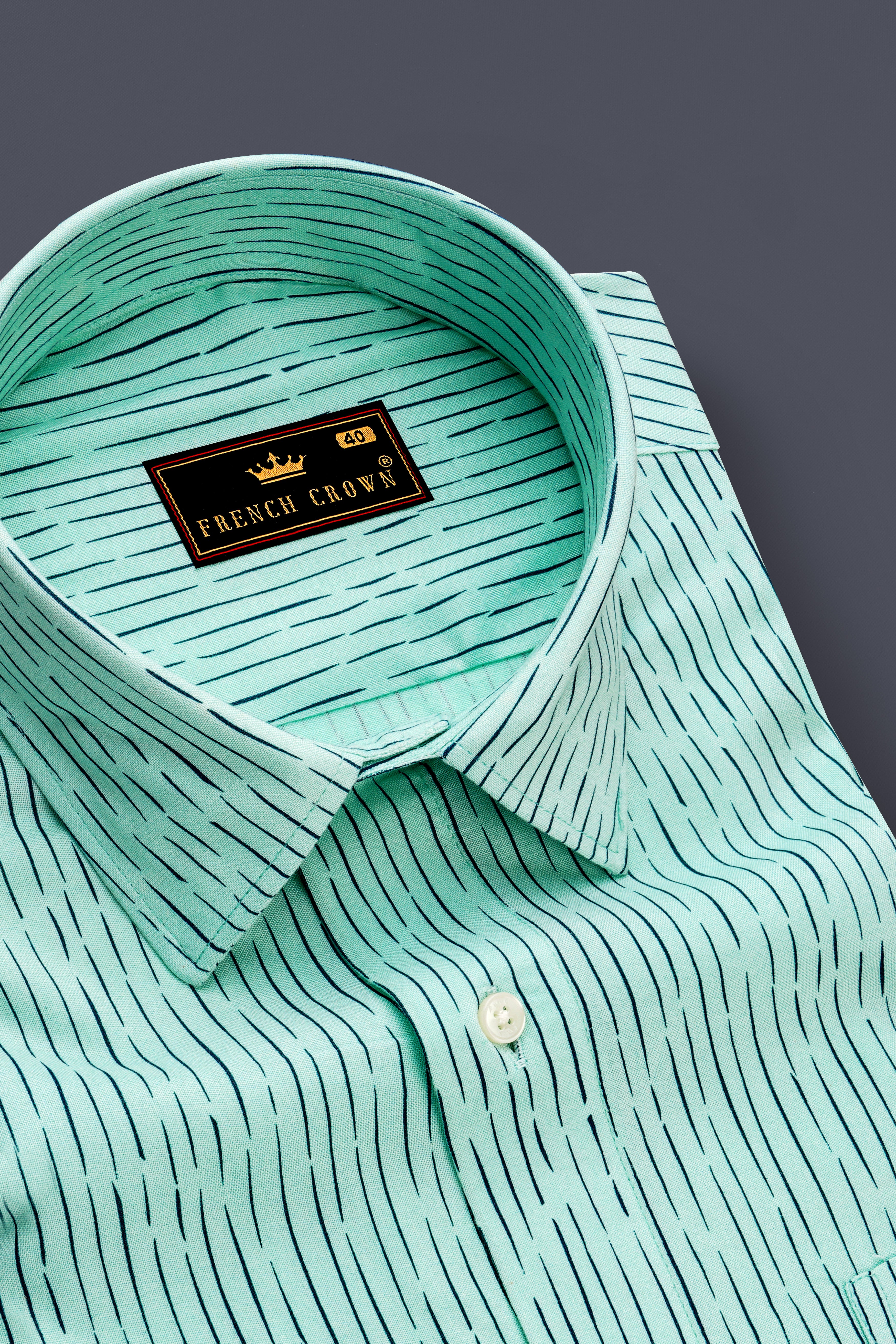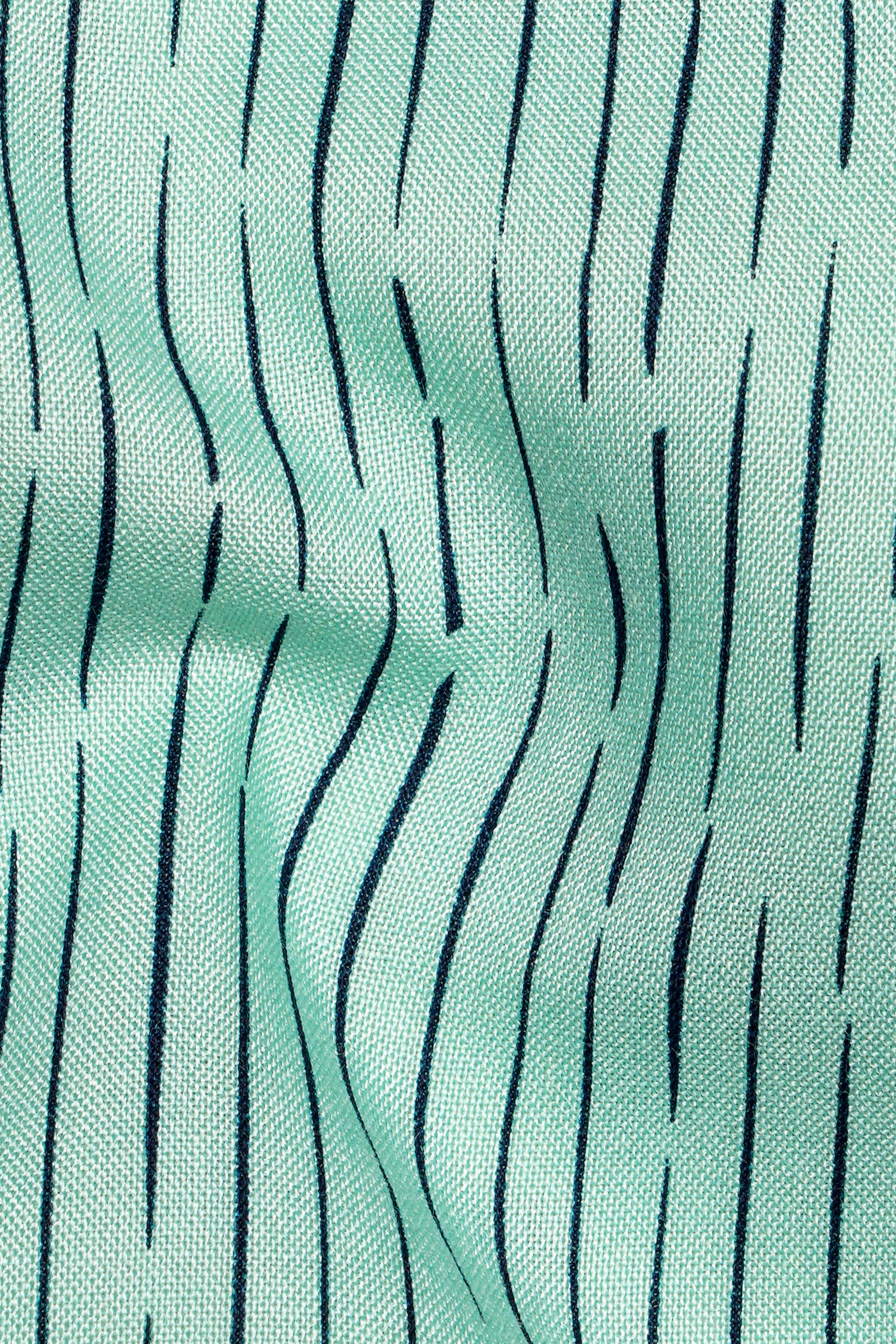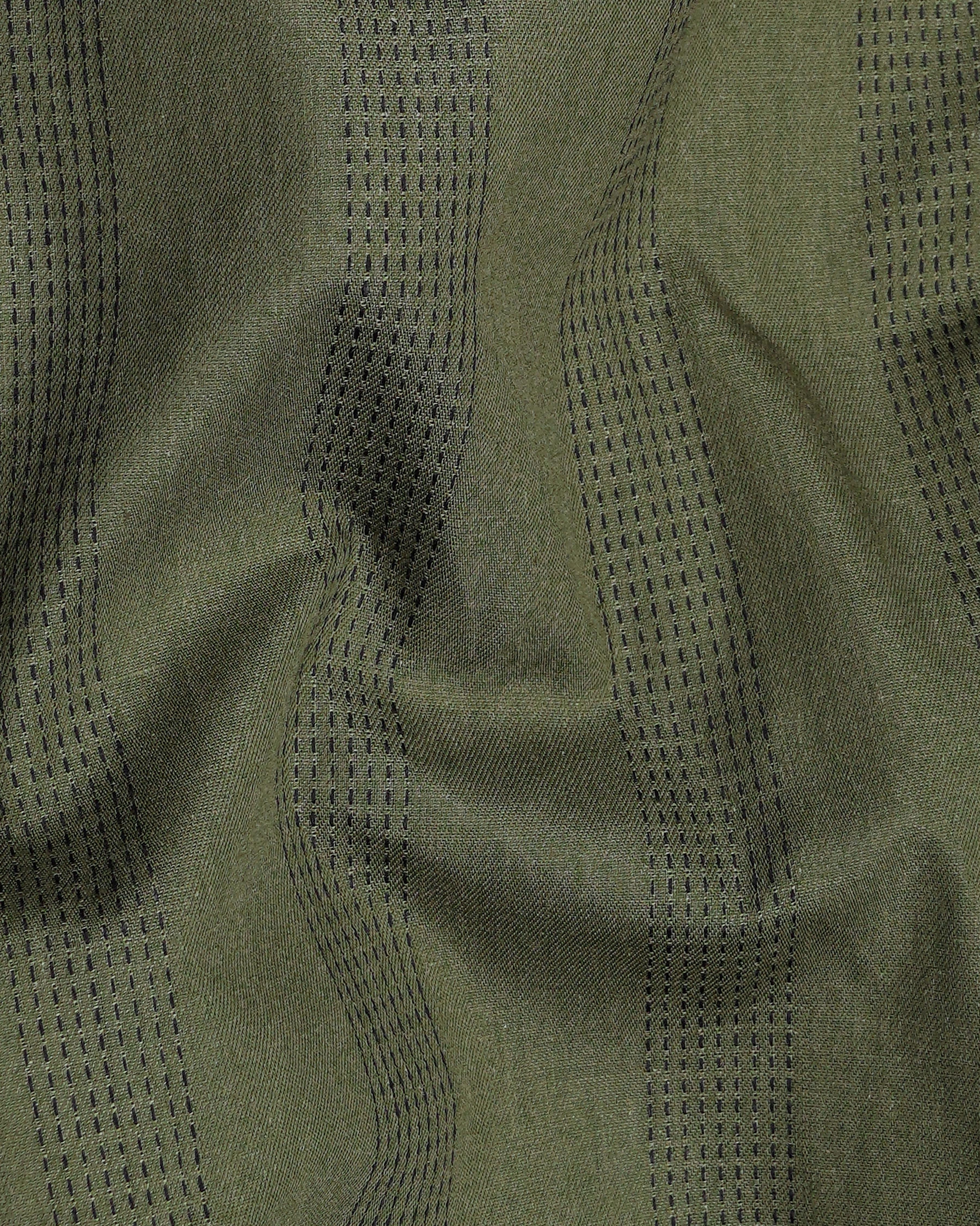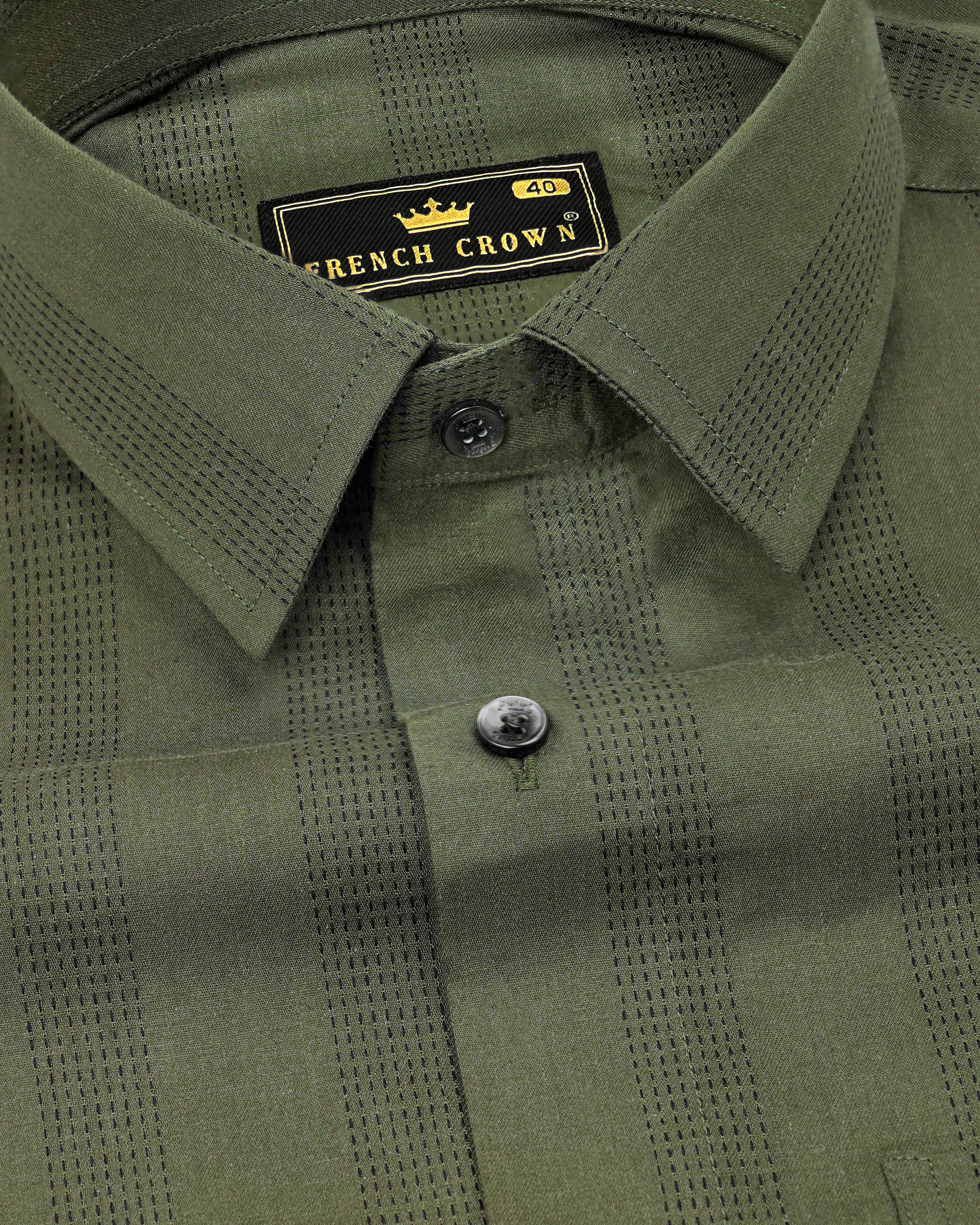 Fuscous Green and Black Striped Dobby Textured Giza Cotton Shirt