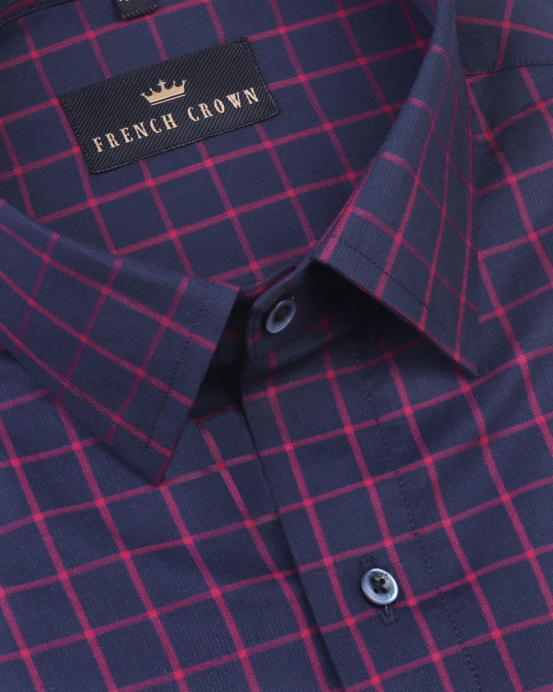 Cardinal Red with White Checkered Squirrel Patchwork Dobby Premium Giza Cotton Designer ShirtCardinal Red with White Checkered Squirrel Patchwork Dobby Premium Giza Cotton Designer Shirt