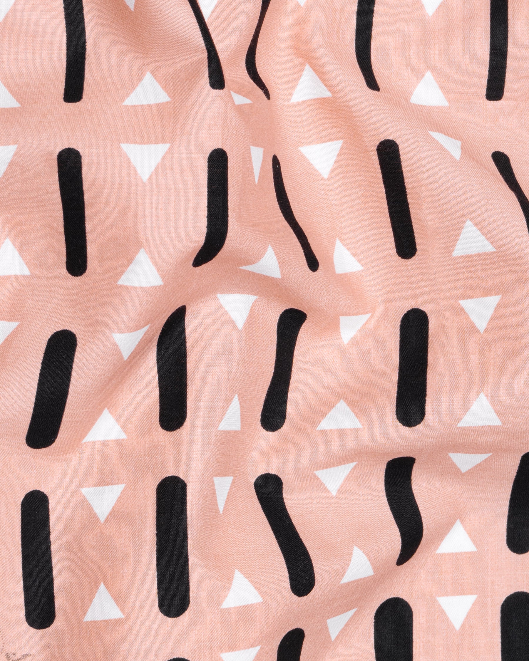 Misty Rose and Black Geometric Print Premium Cotton Kurta Shirt