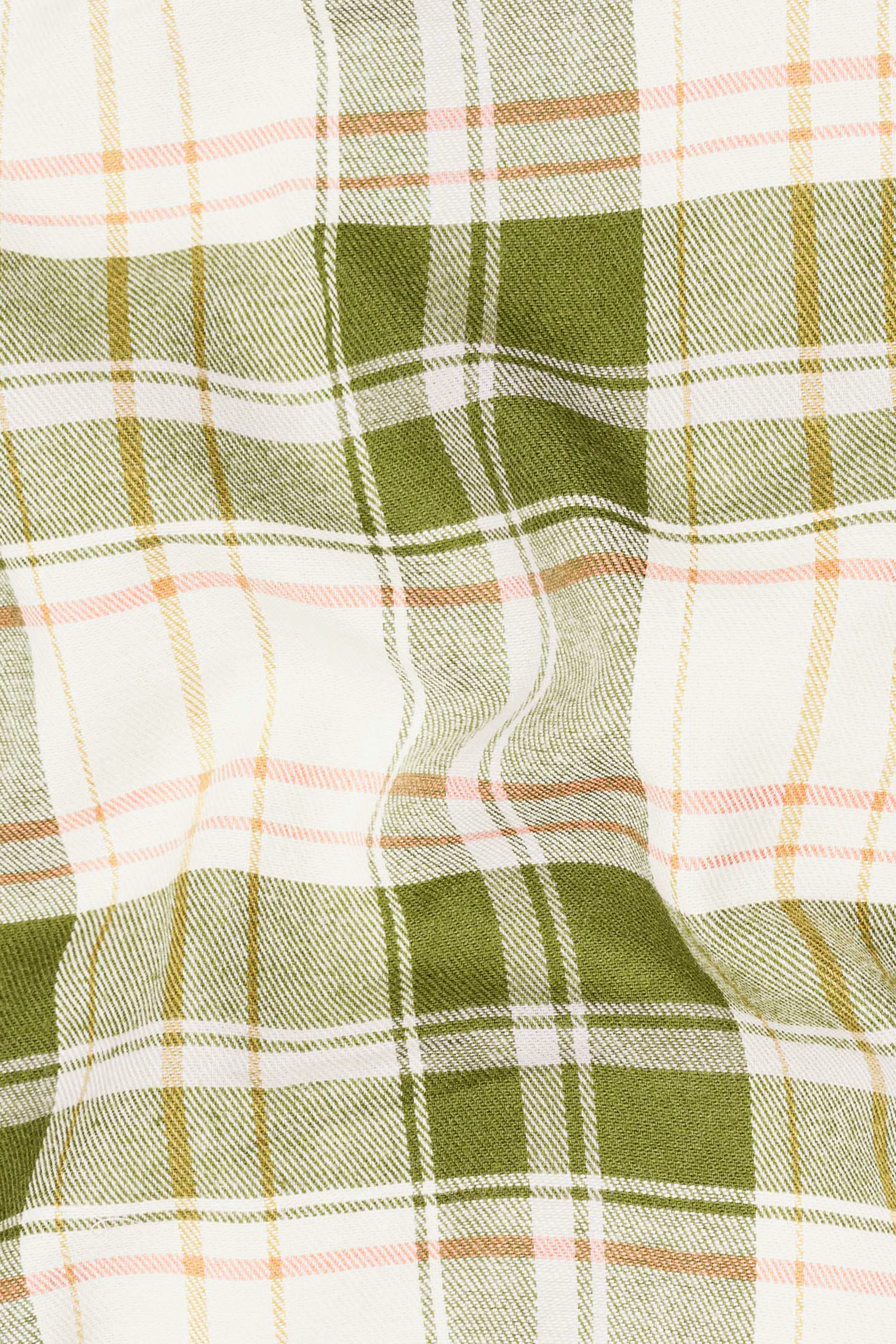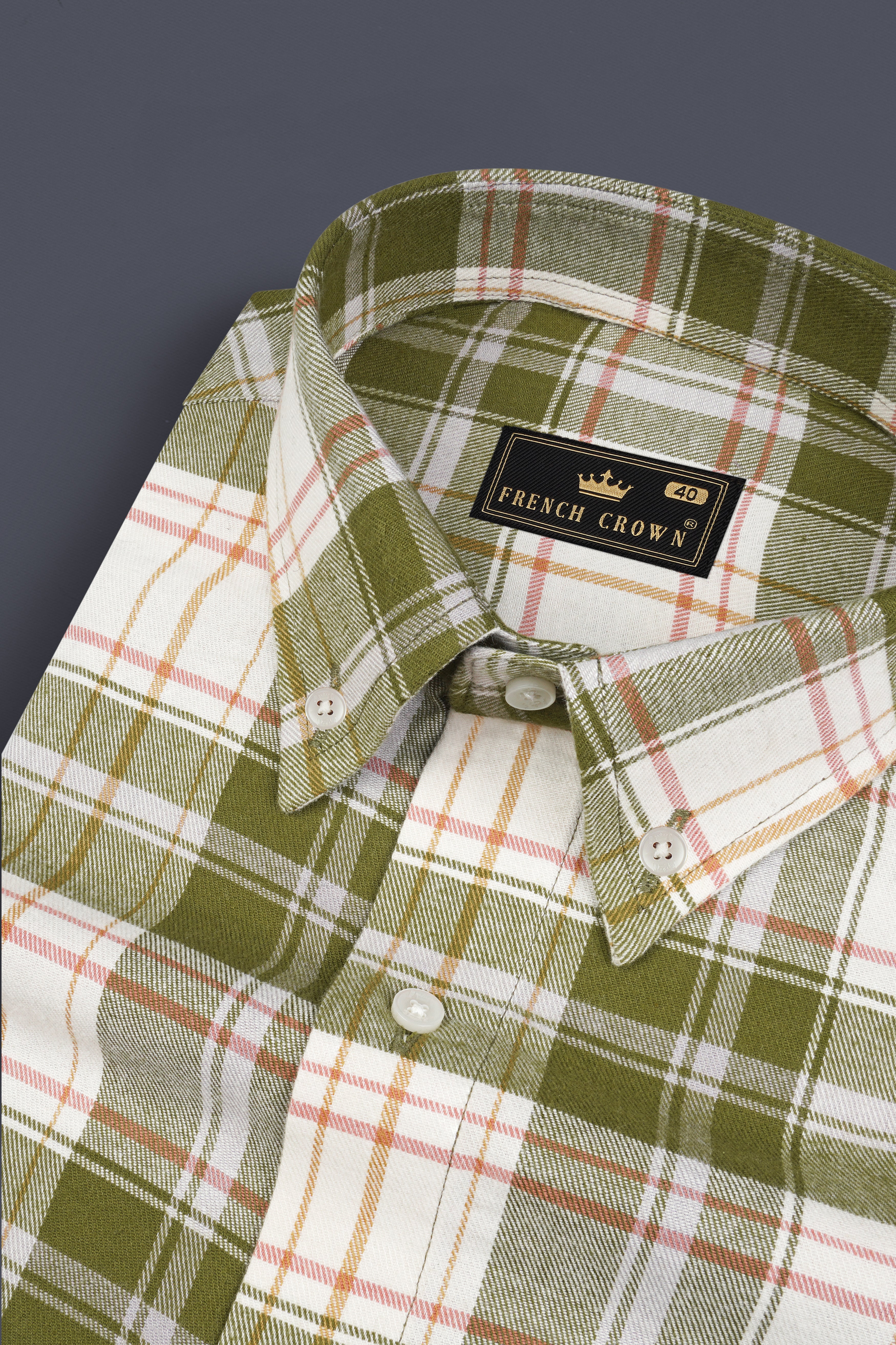 Moccasin Green and White Plaid Flannel ShirtMoccasin Green and White Plaid Flannel Shirt