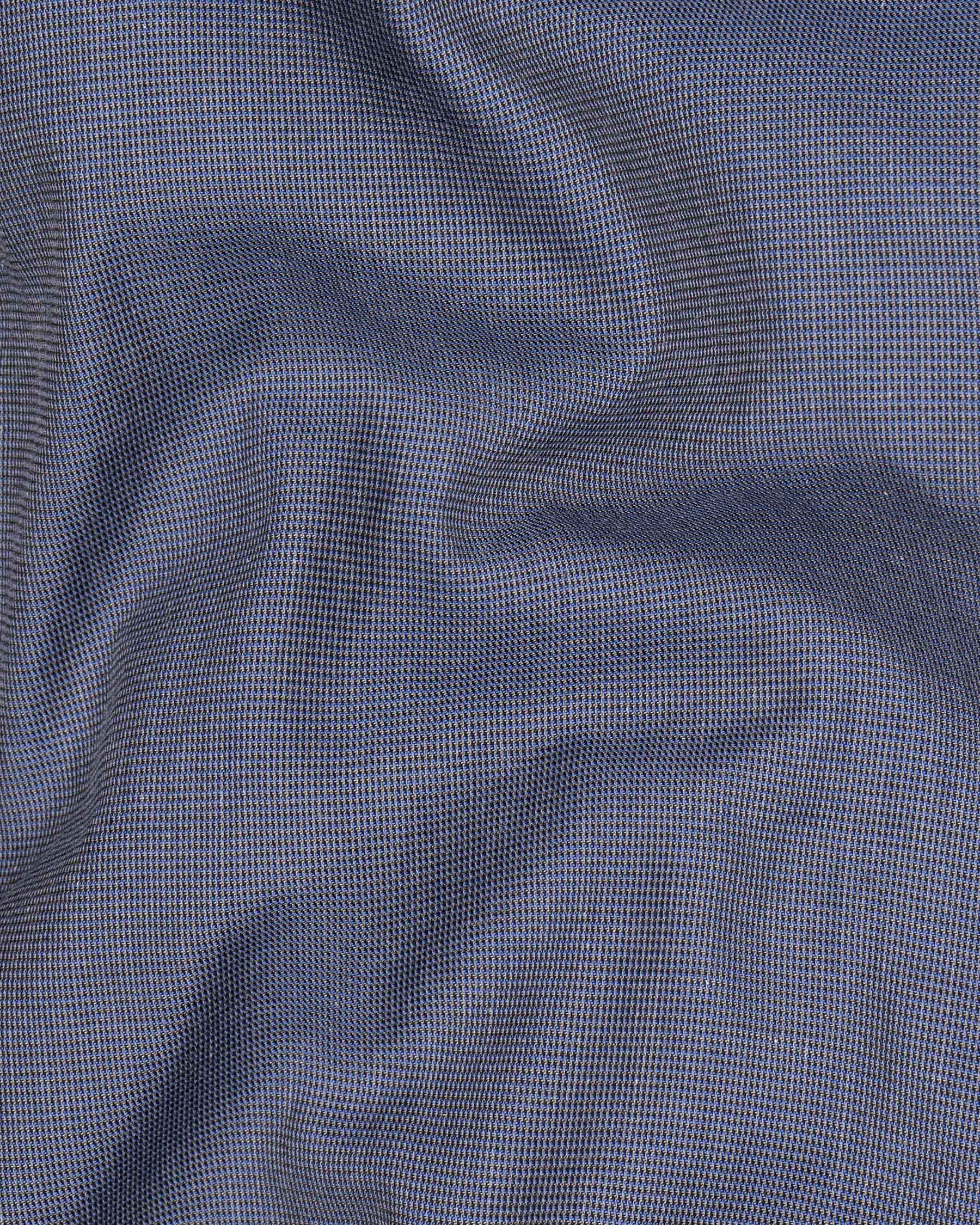 Cadet Blue Micro Houndstooth Textured Premium Giza Cotton Shirt
