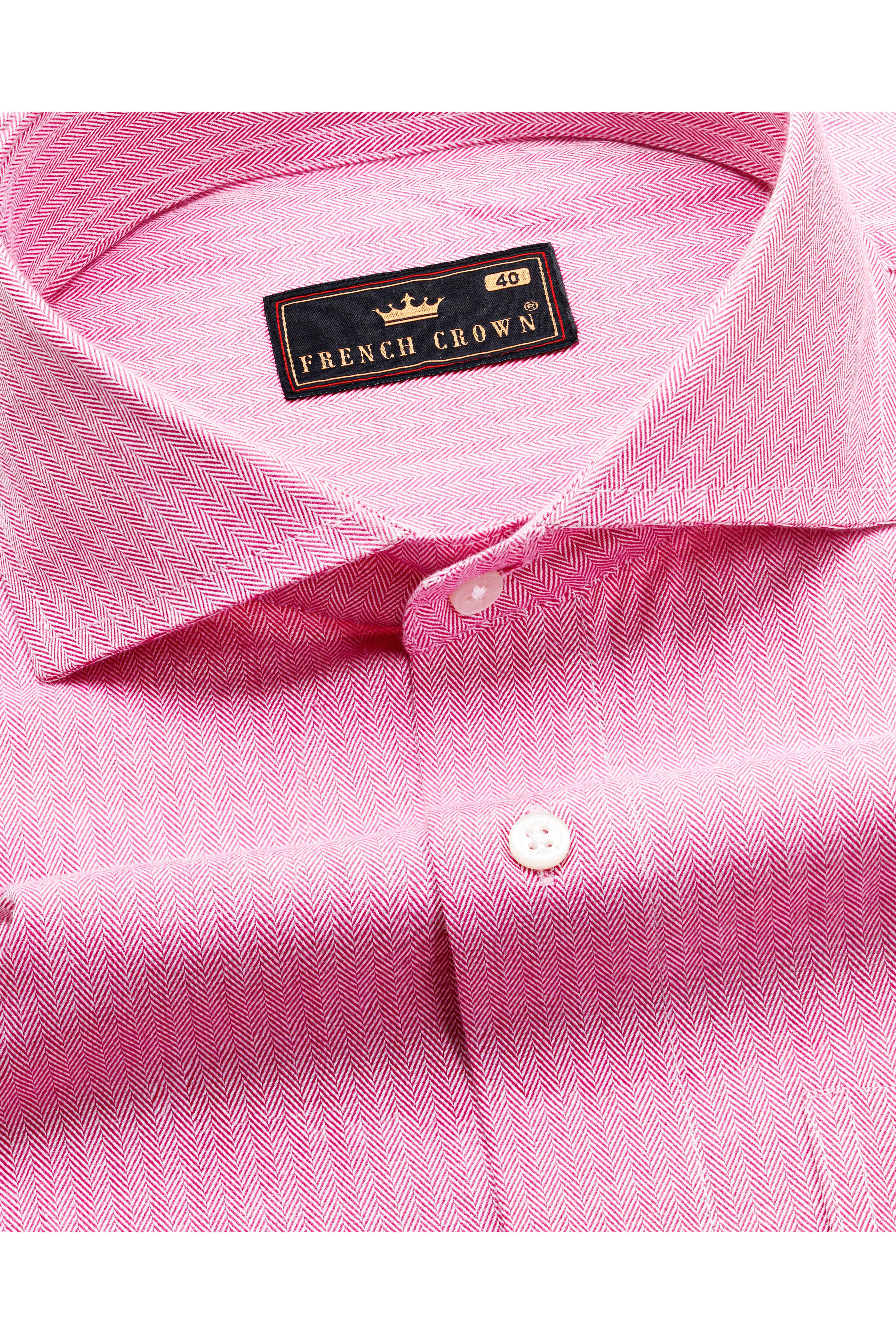 Carissma Pink Herringbone Premium Cotton ShirtCarissma Pink Herringbone Premium Cotton Shirt
