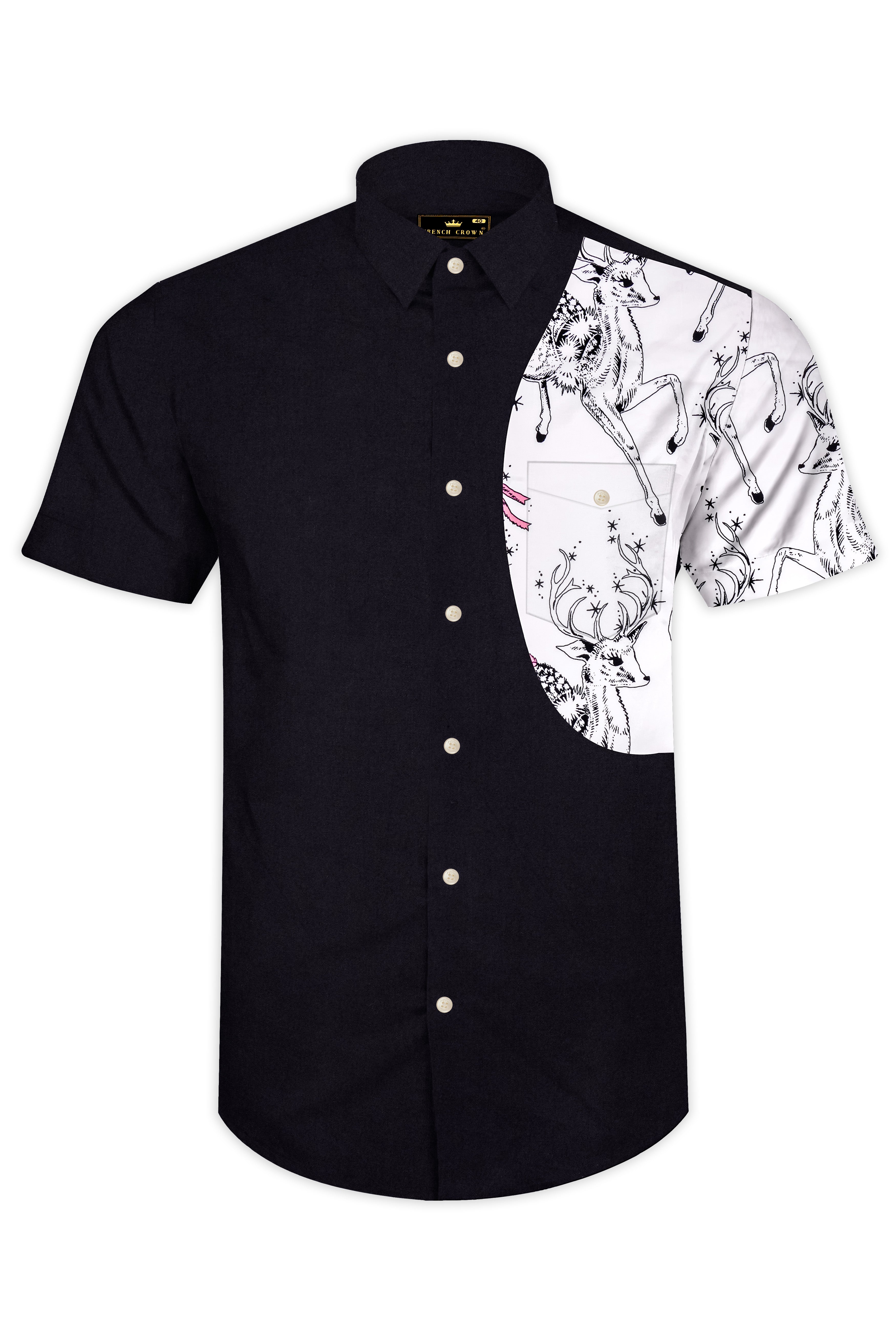 Eldeen-Jade Black And Bright White Deer Printed Subtle Sheen Super Soft Premium Cotton Casual Designer ShirtEldeen-Jade Black And Bright White Deer Printed Subtle Sheen Super Soft Premium Cotton Casual Designer Shirt