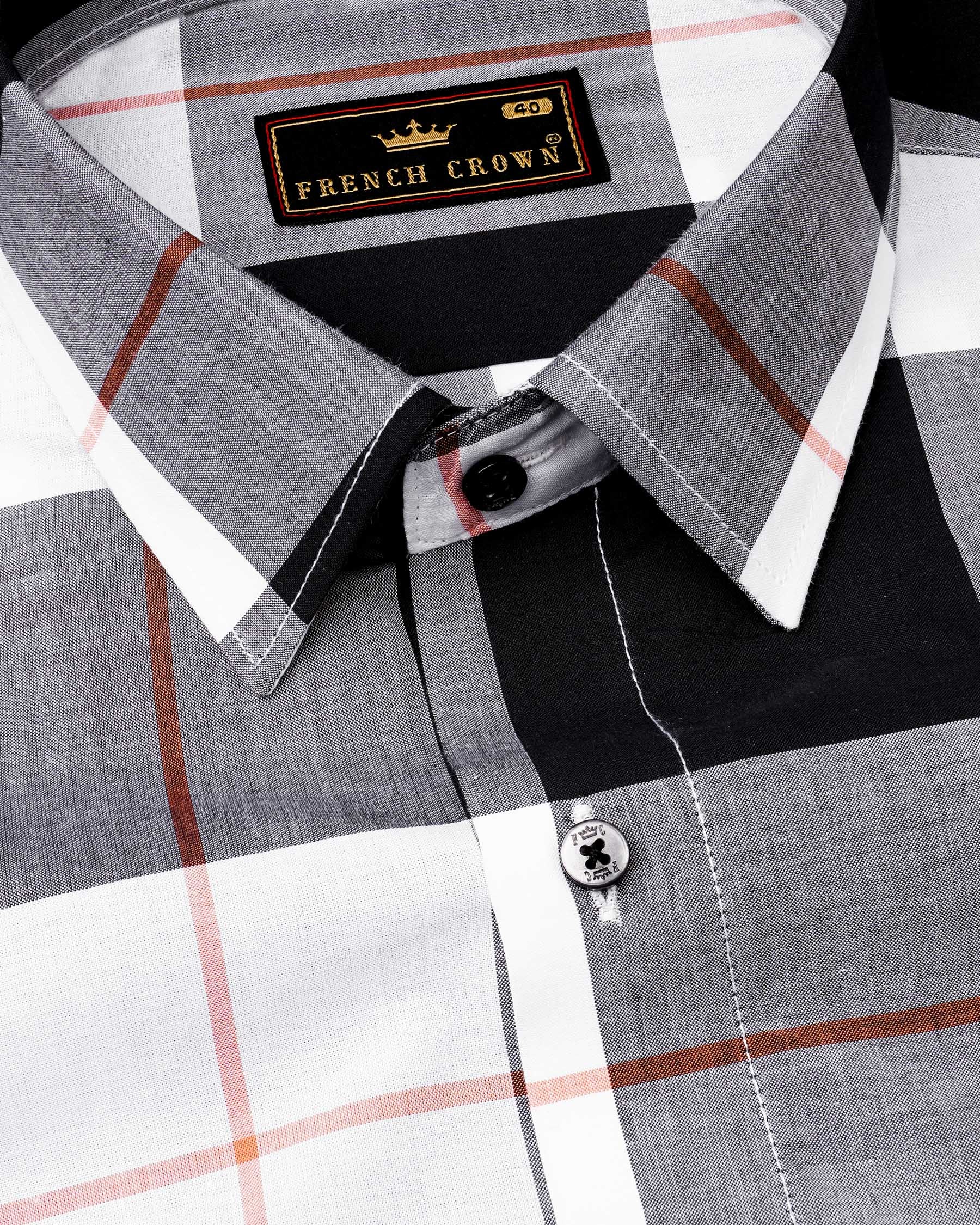 Bright White and Iridium Black Checkered Premium Cotton Shirt