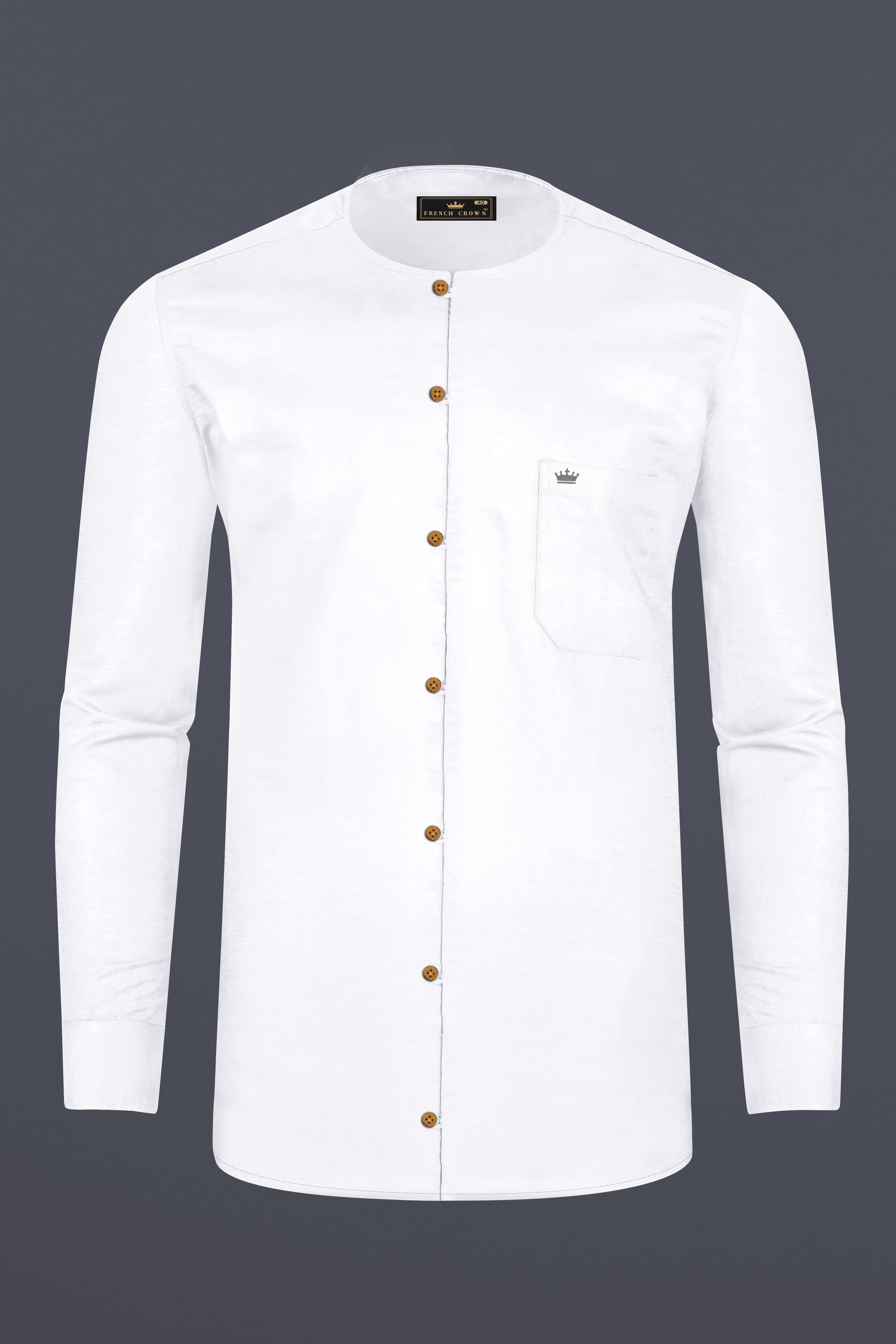 Bright White Collarless Luxurious Linen ShirtBright White Collarless Luxurious Linen Shirt