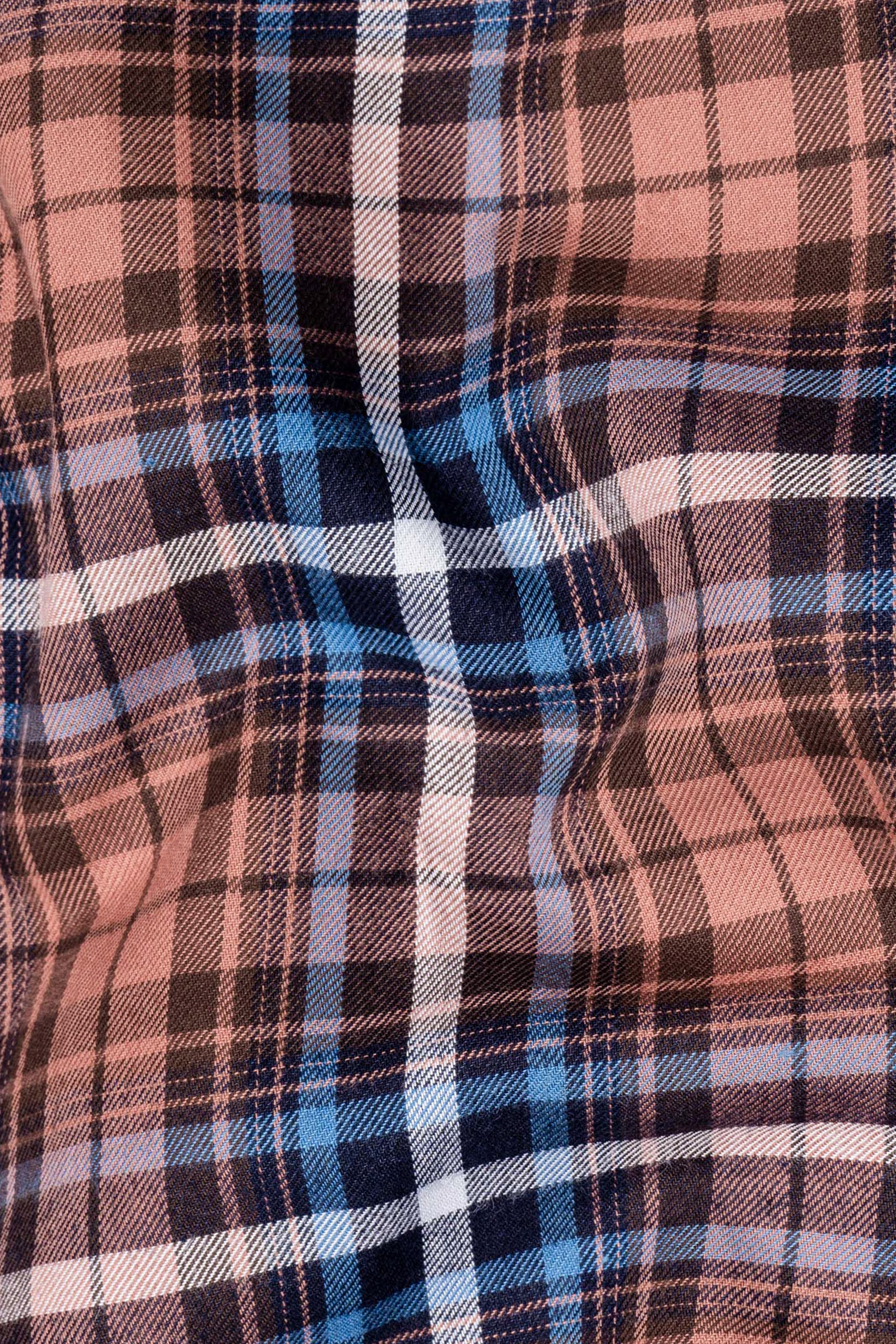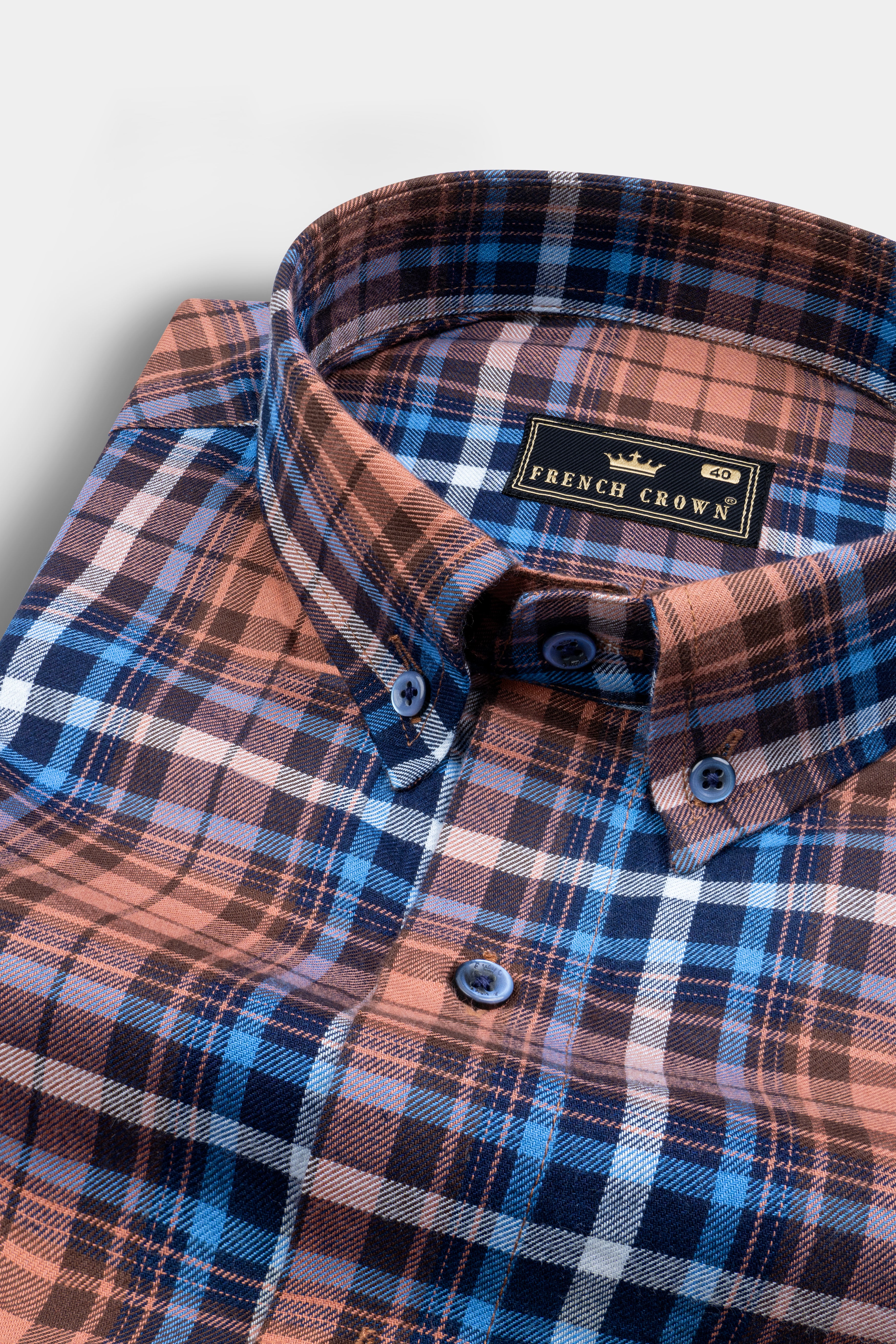 Brown with Danube Blue Twill Plaid Premium Cotton ShirtBrown with Danube Blue Twill Plaid Premium Cotton Shirt