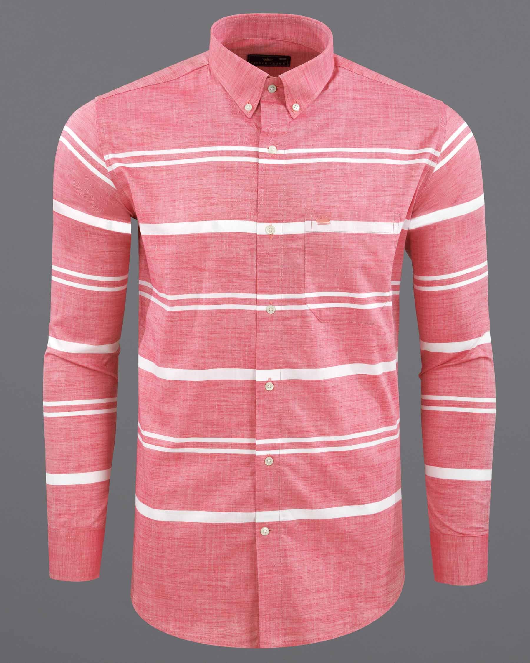 Geraldine Pink Striped Chambray Textured Premium Cotton Shirt
