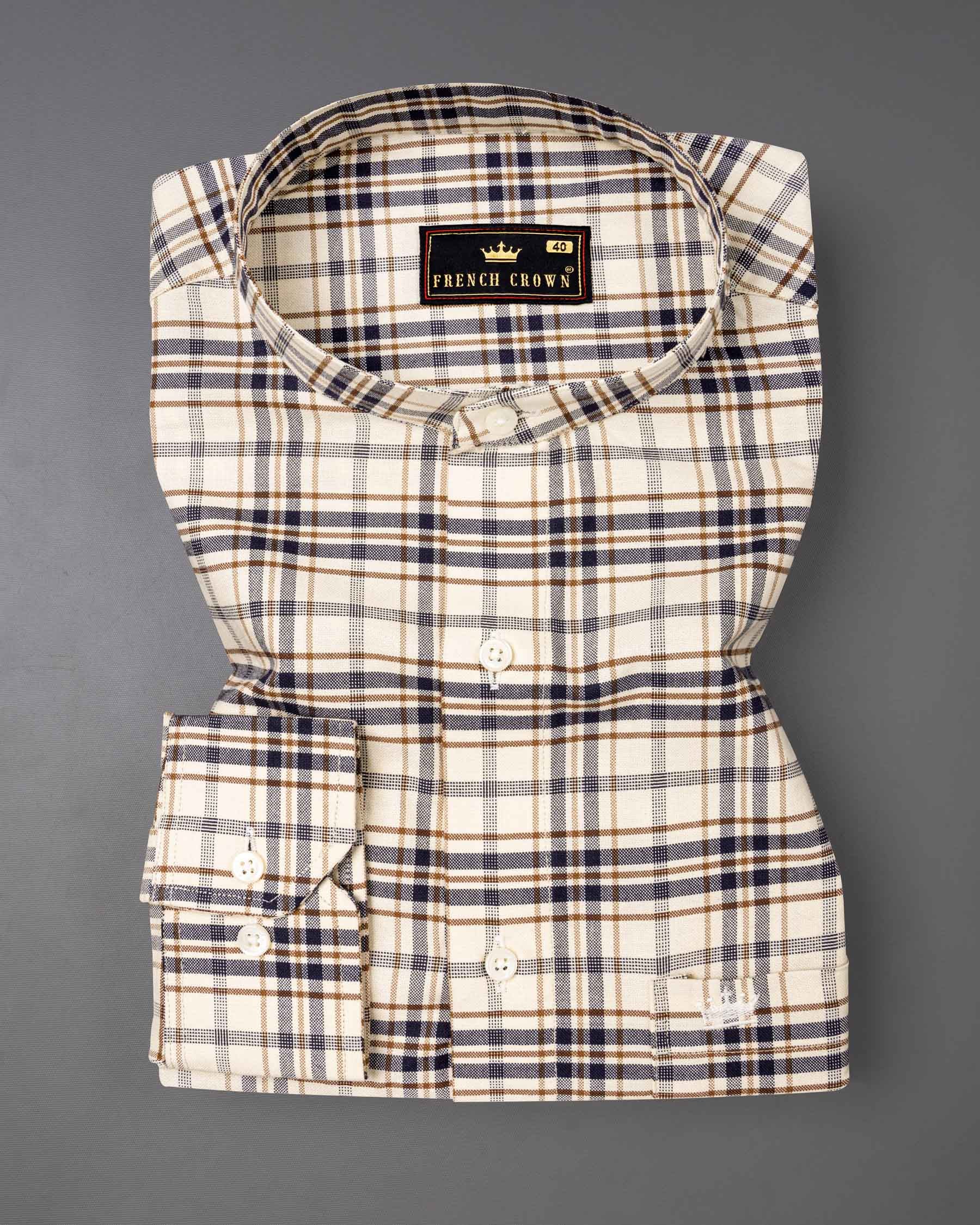Bright White with Alpine Brown Plaid Premium Cotton Designer Shirt