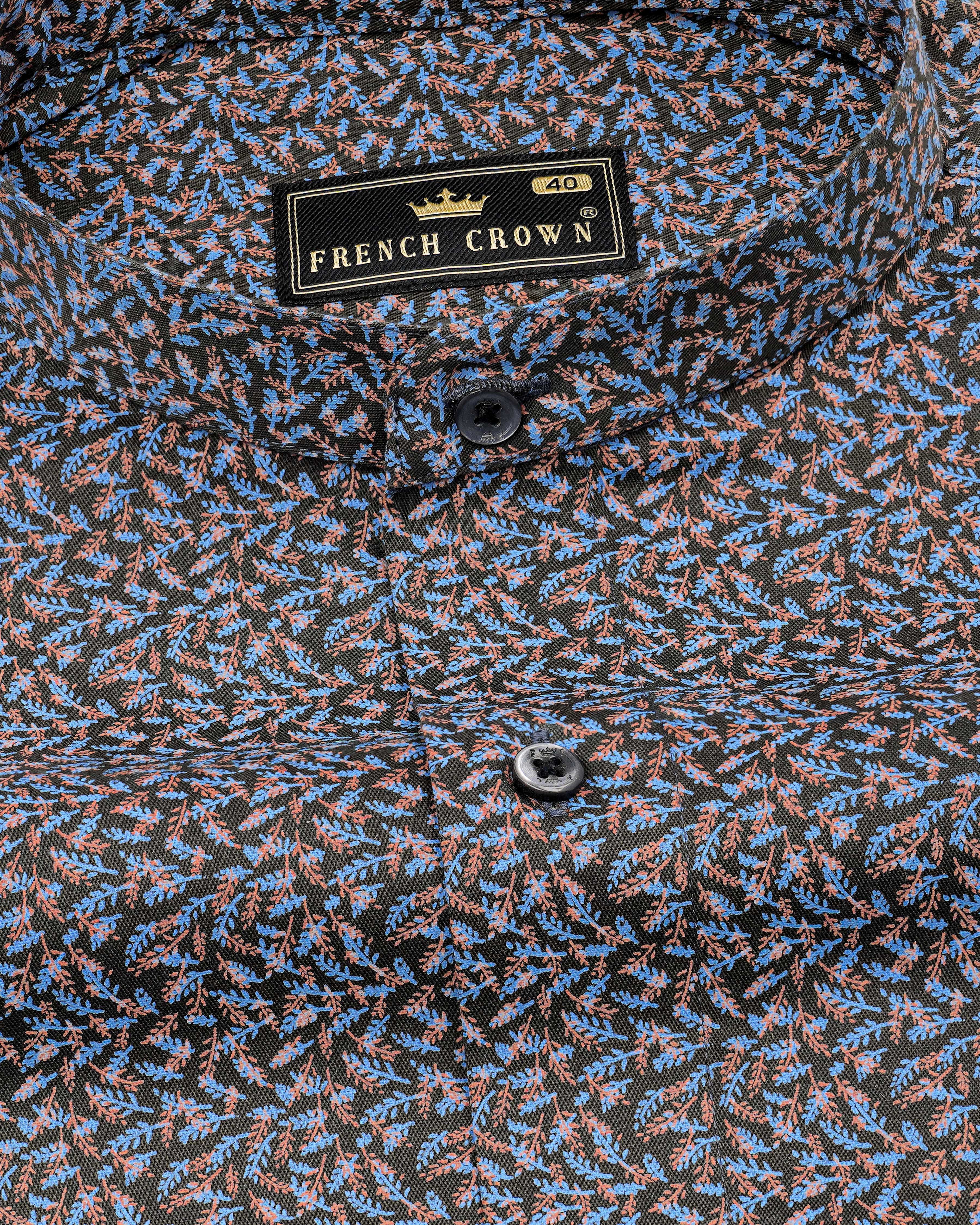 Zeus Black with Waikawa Blue Ditsy Printed Royal Oxford Shirt
