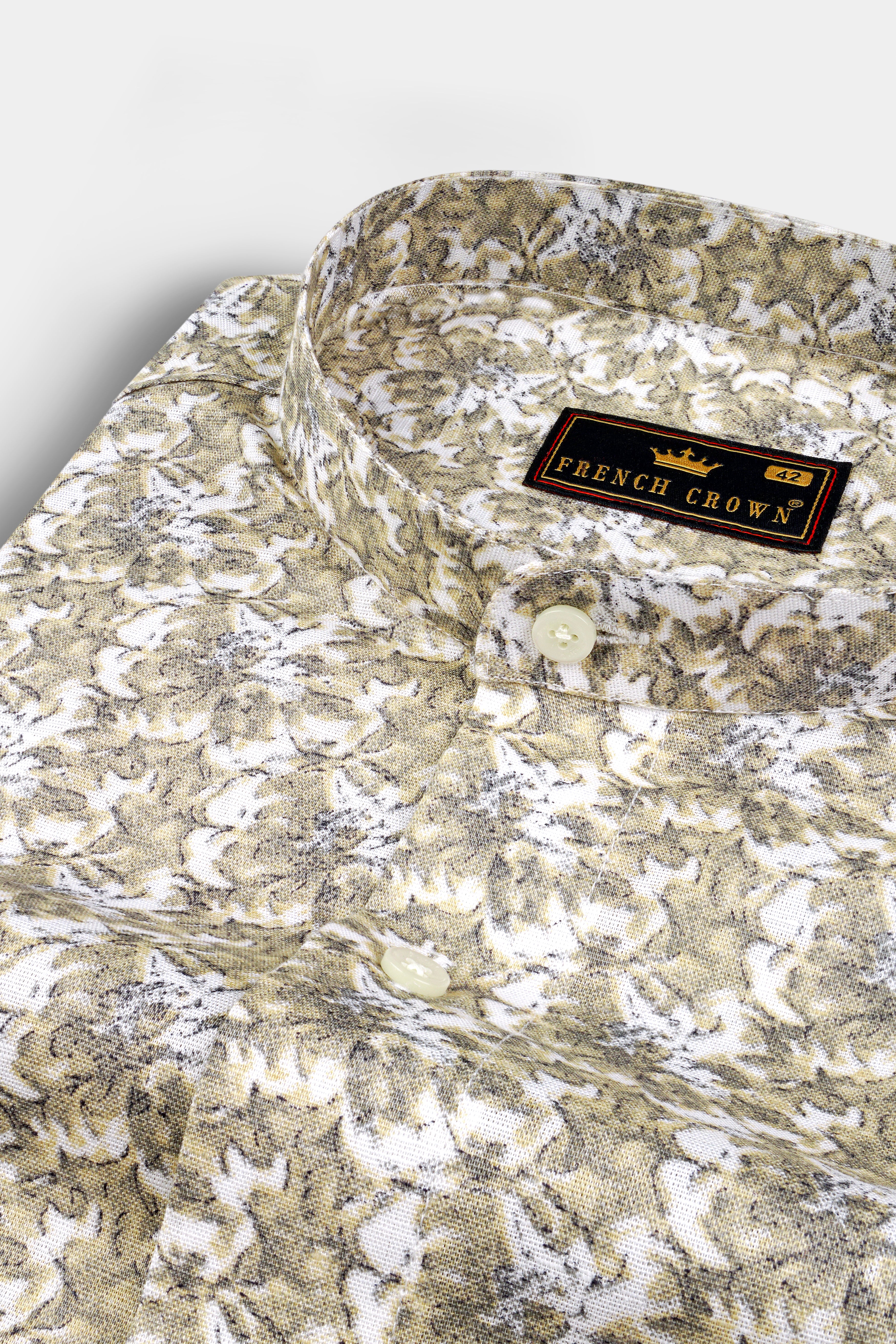 White with Tana Brown Floral print Luxurious Linen ShirtWhite with Tana Brown Floral print Luxurious Linen Shirt