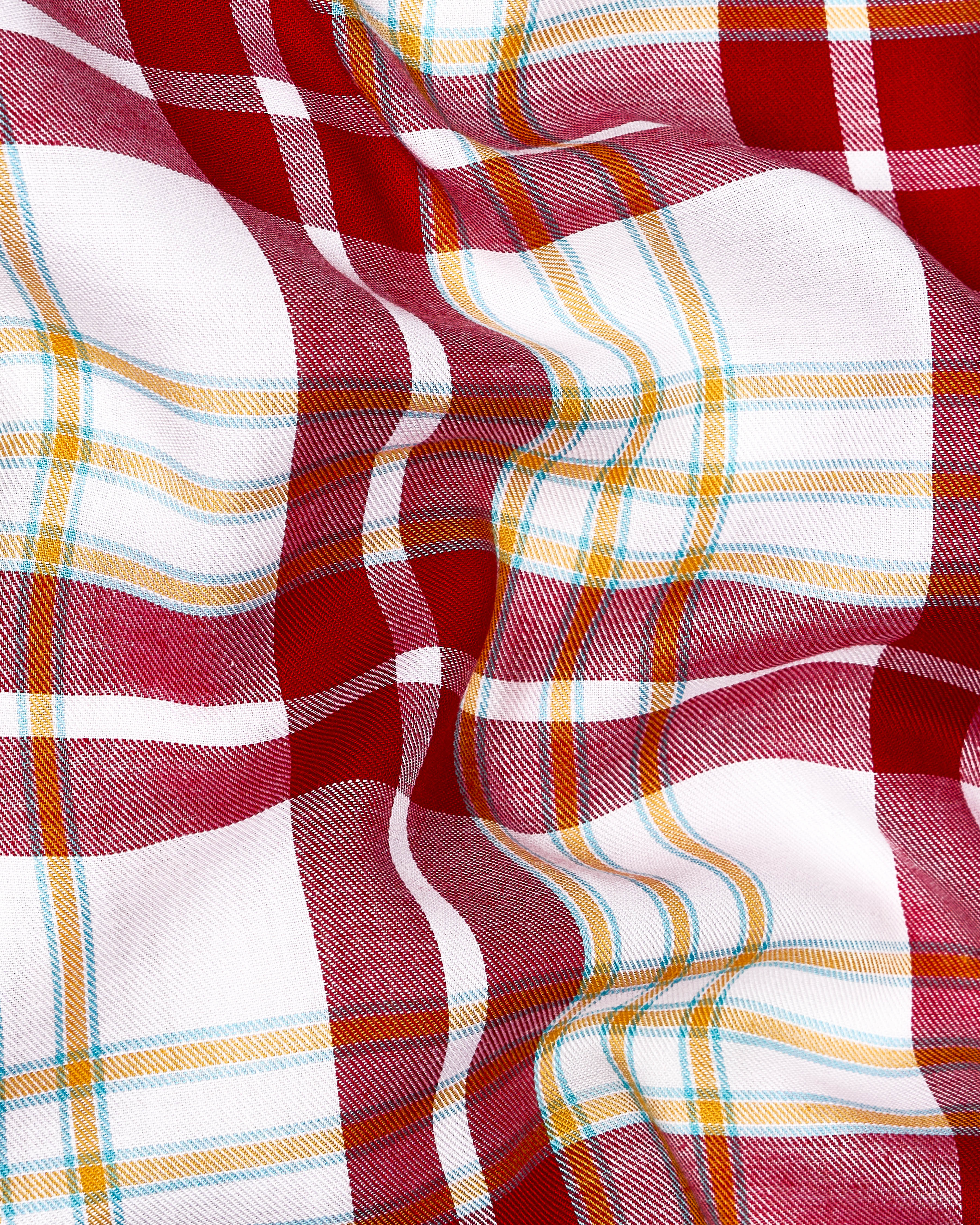 Devil Red with Off-White Twill Plaid Premium Cotton ShirtDevil Red with Off-White Twill Plaid Premium Cotton Shirt