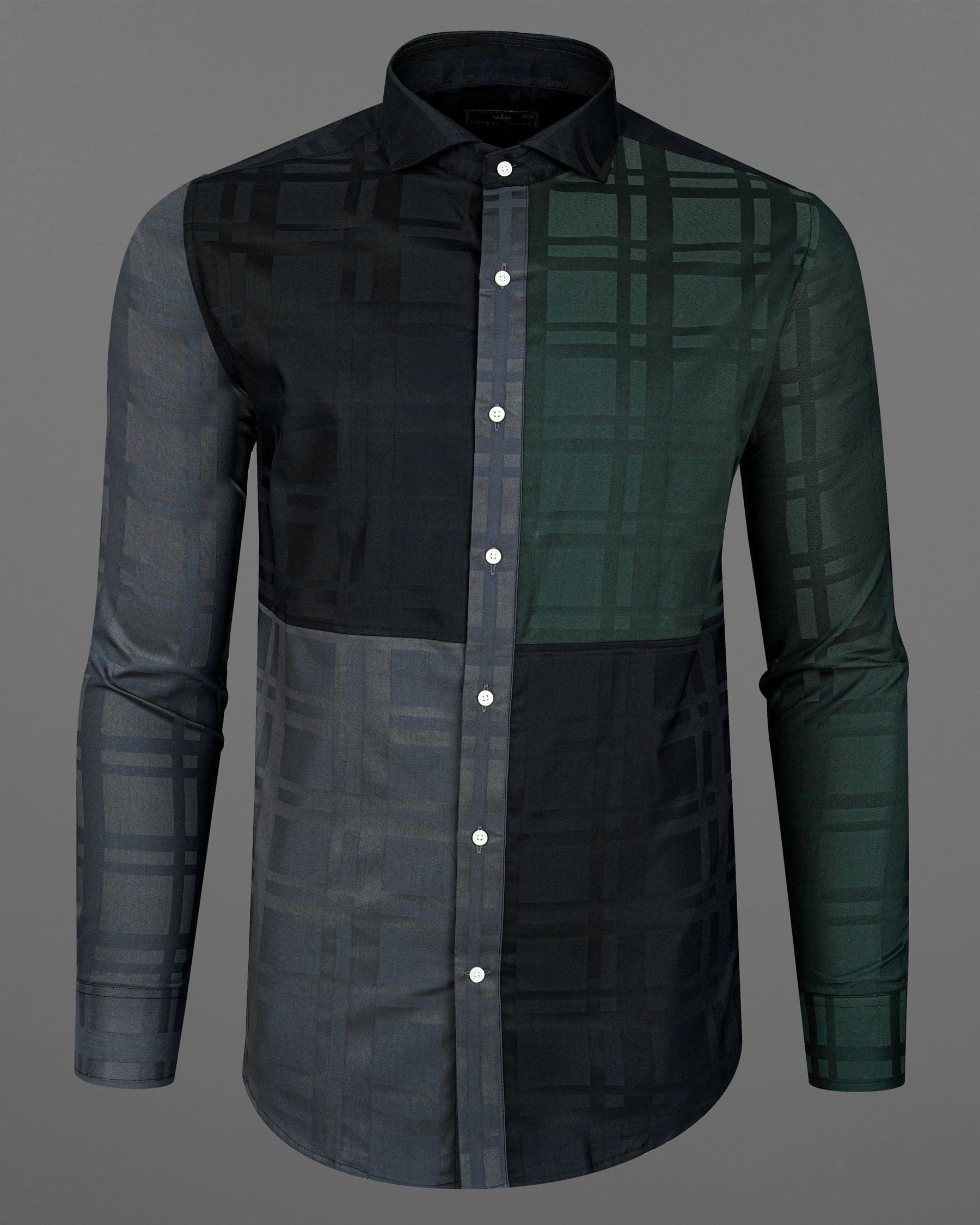 Green With Jade Black 3D Plaid Dobby Textured Giza Cotton Designer Shirt