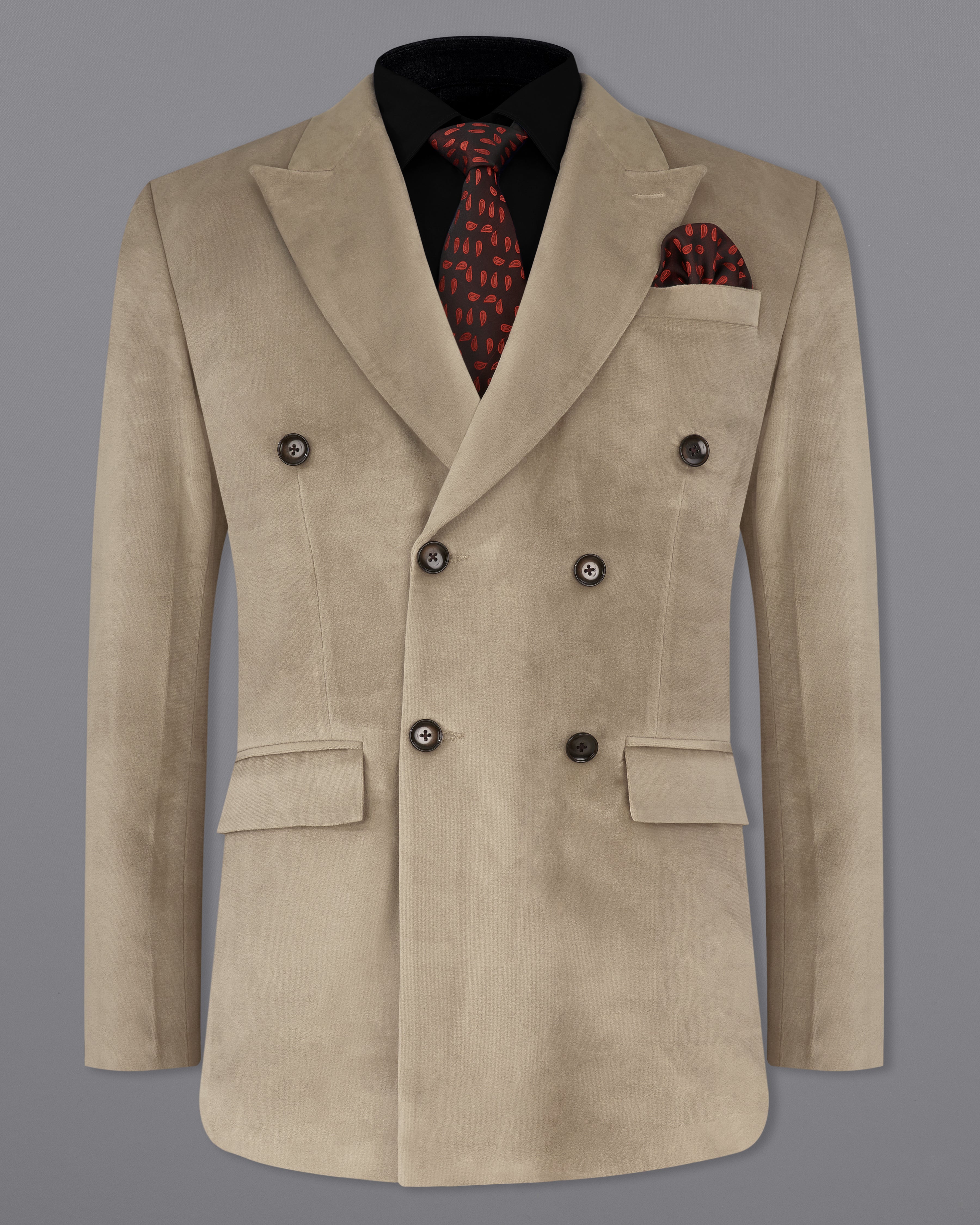 Squirrel Brown Velvet Double-Breasted Designer BlazerSquirrel Brown Velvet Double-Breasted Designer Blazer