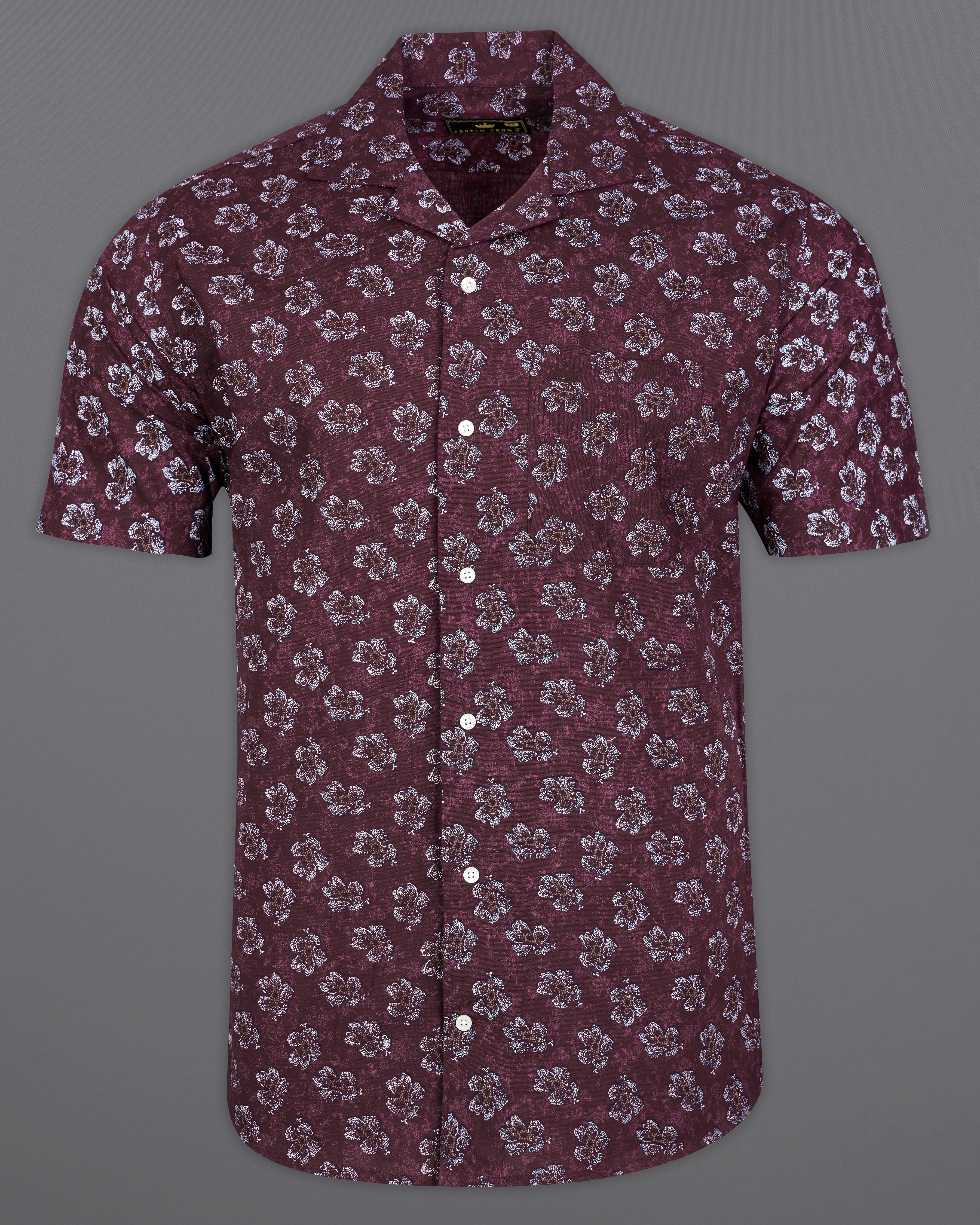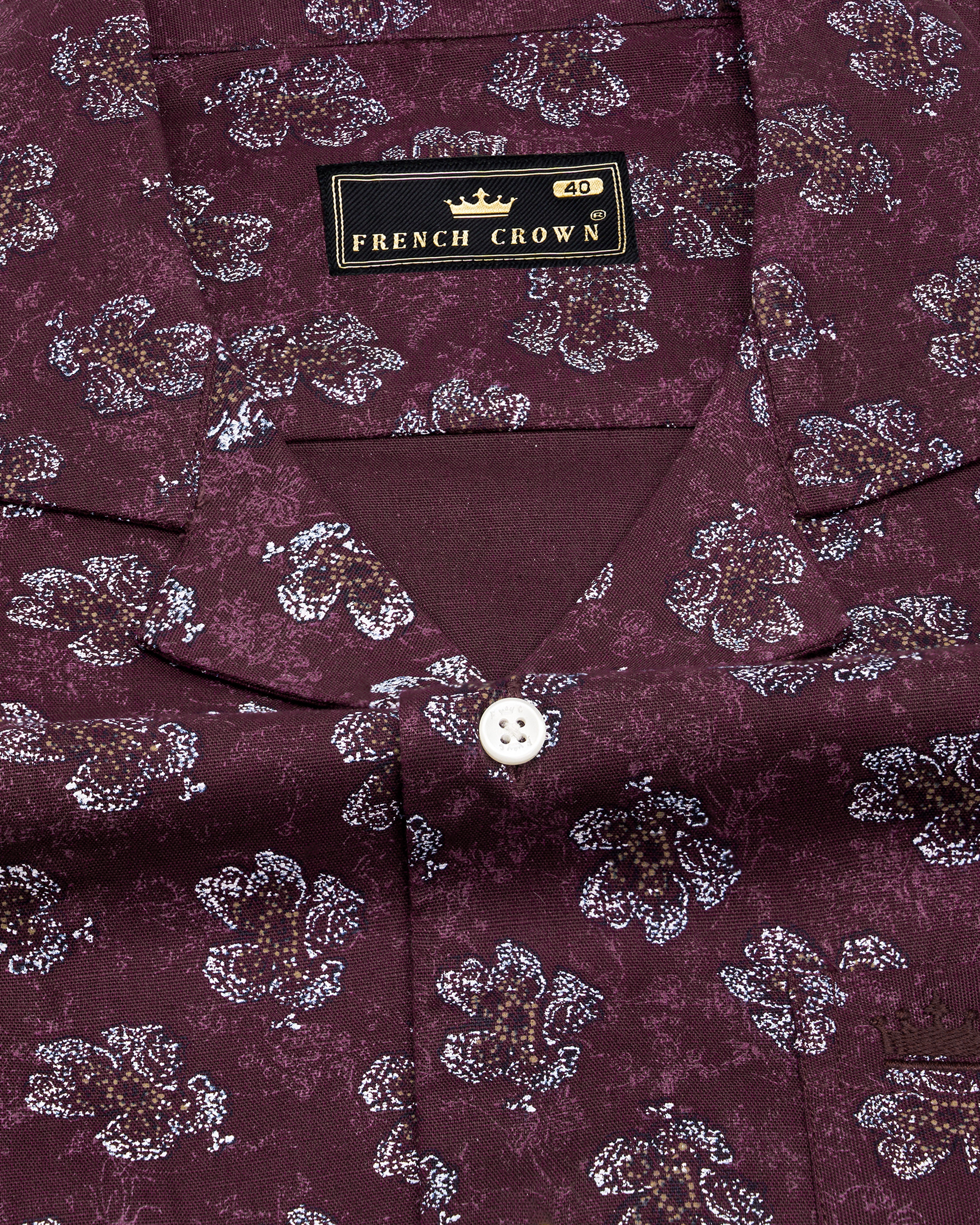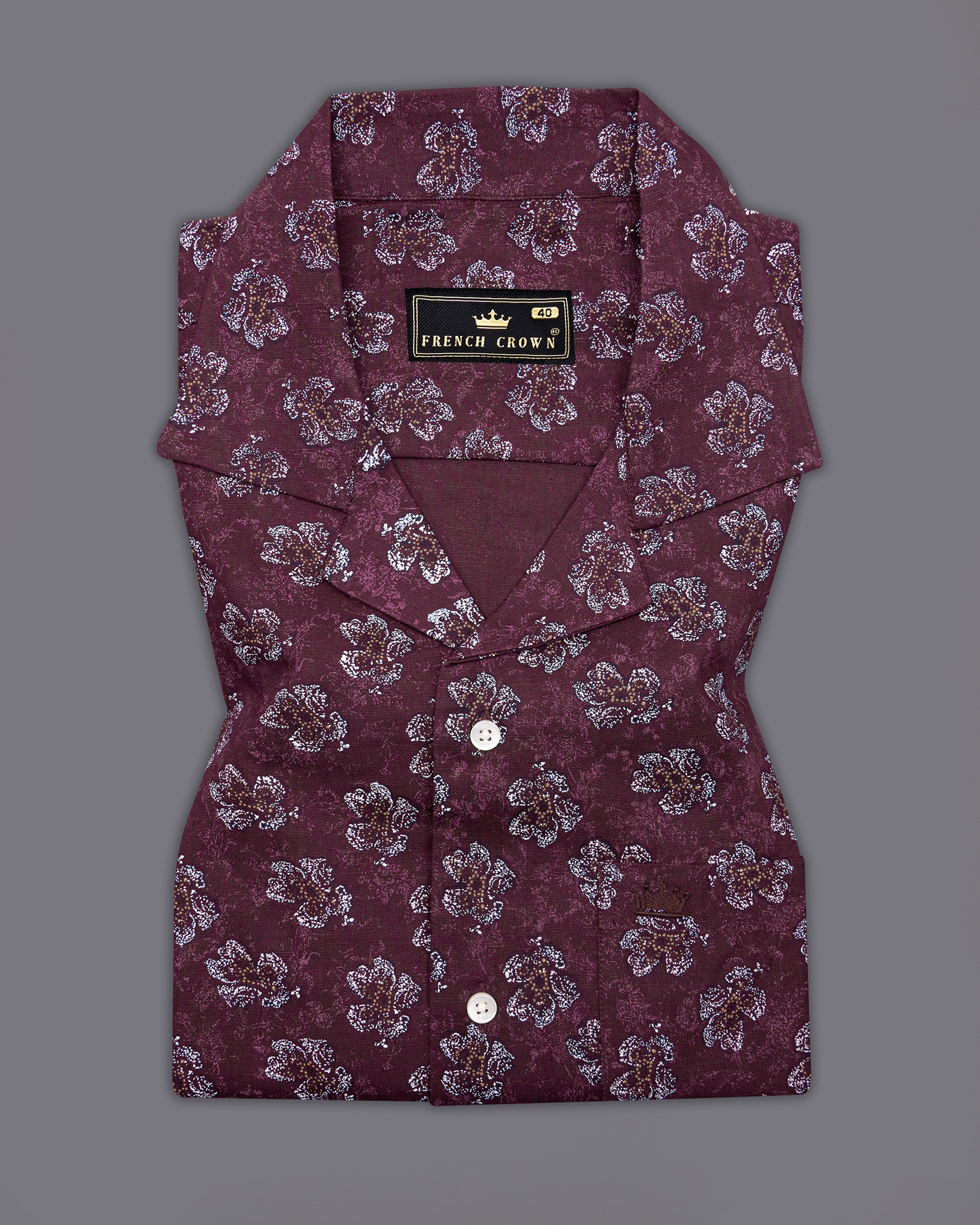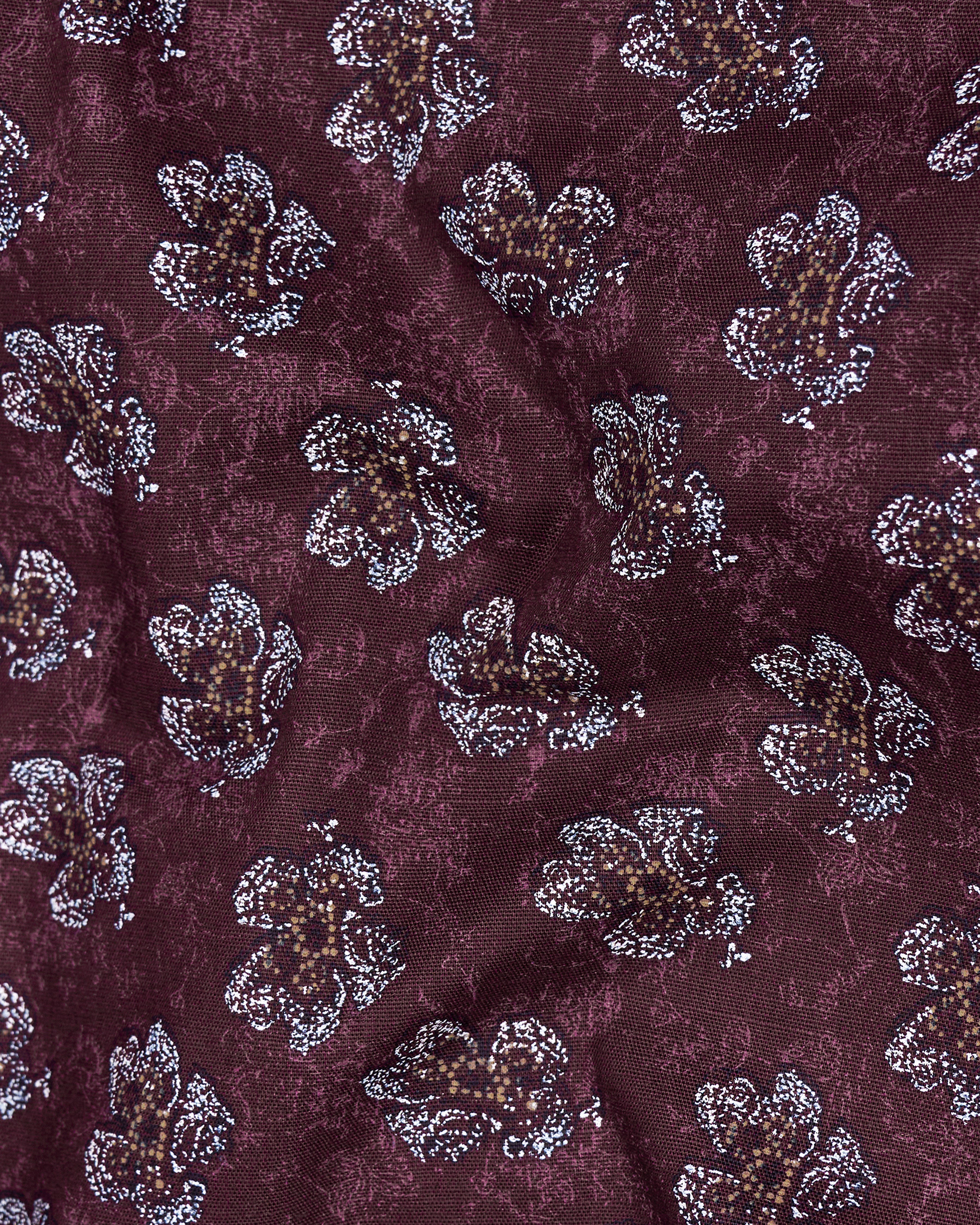 Barossa Maroon Floral Textured Luxurious Half Sleeves Linen Shirt
