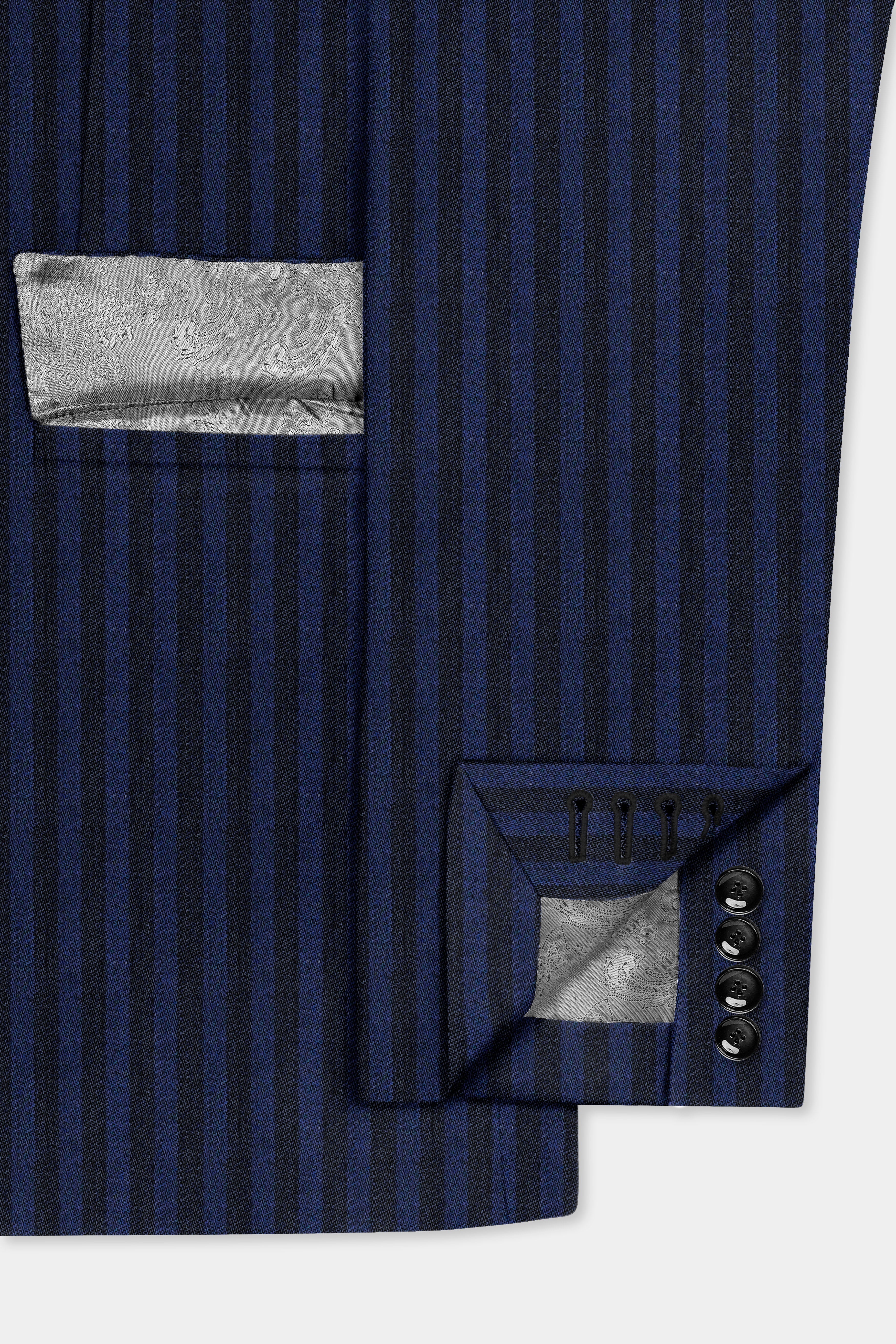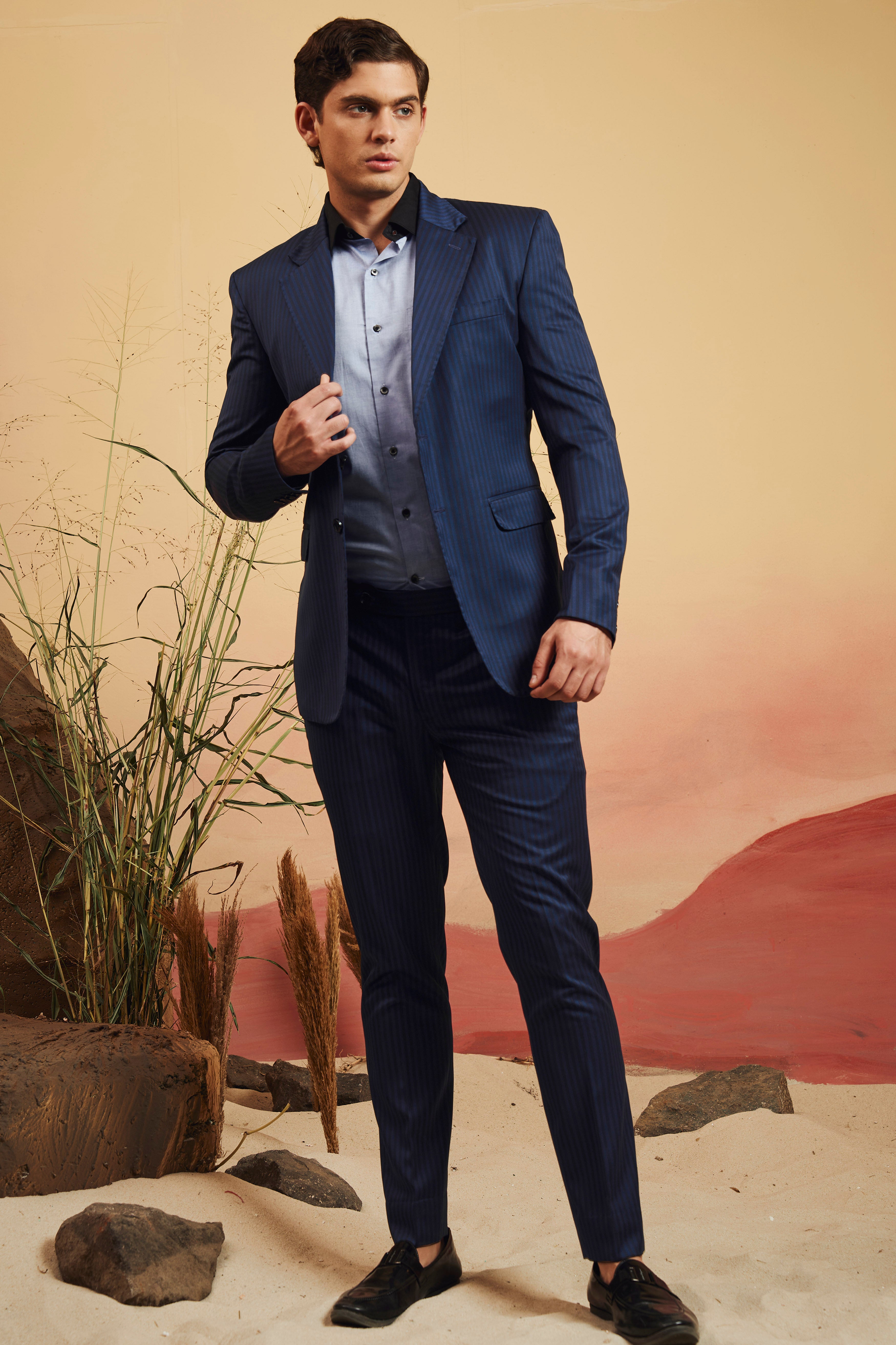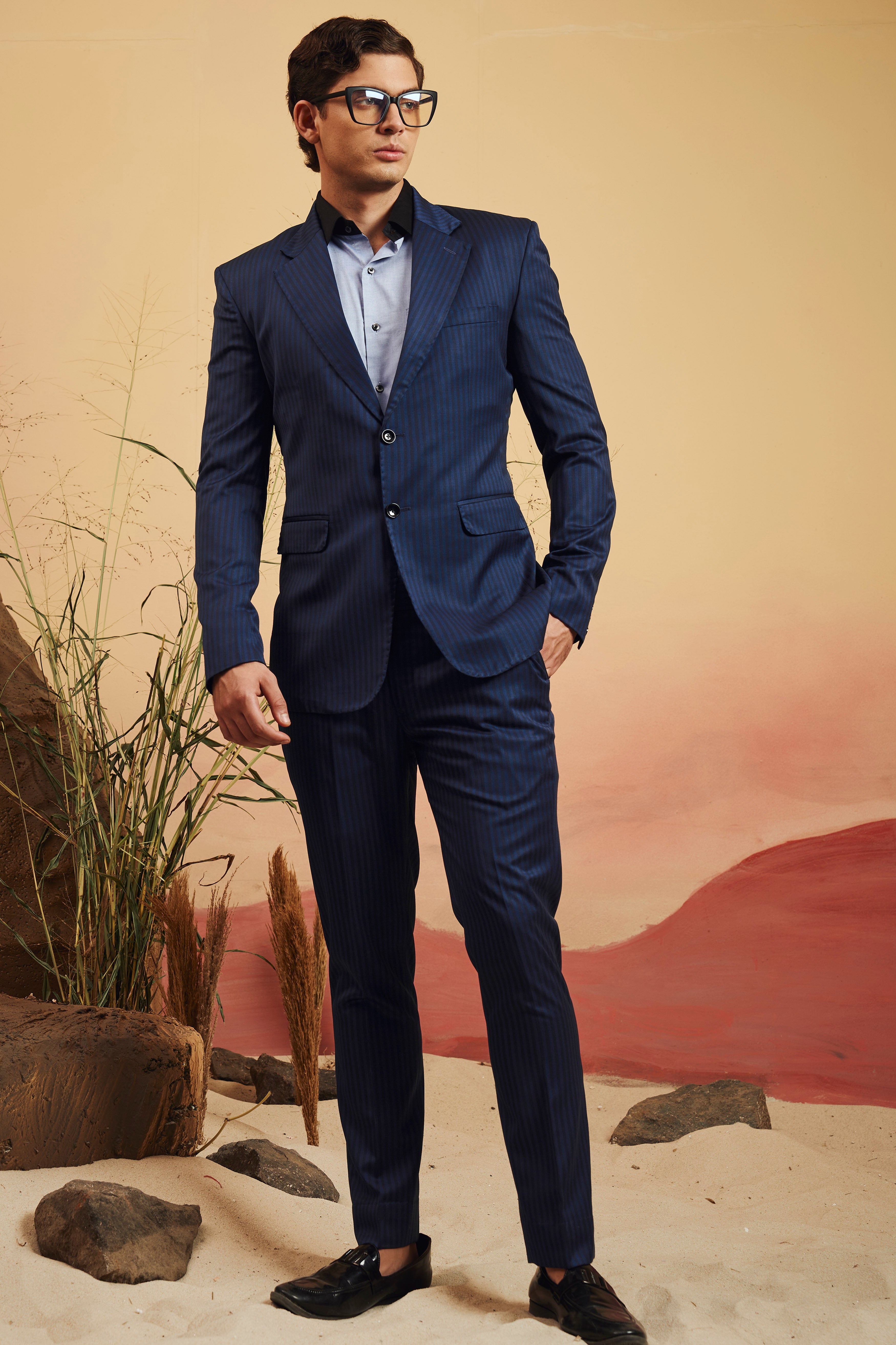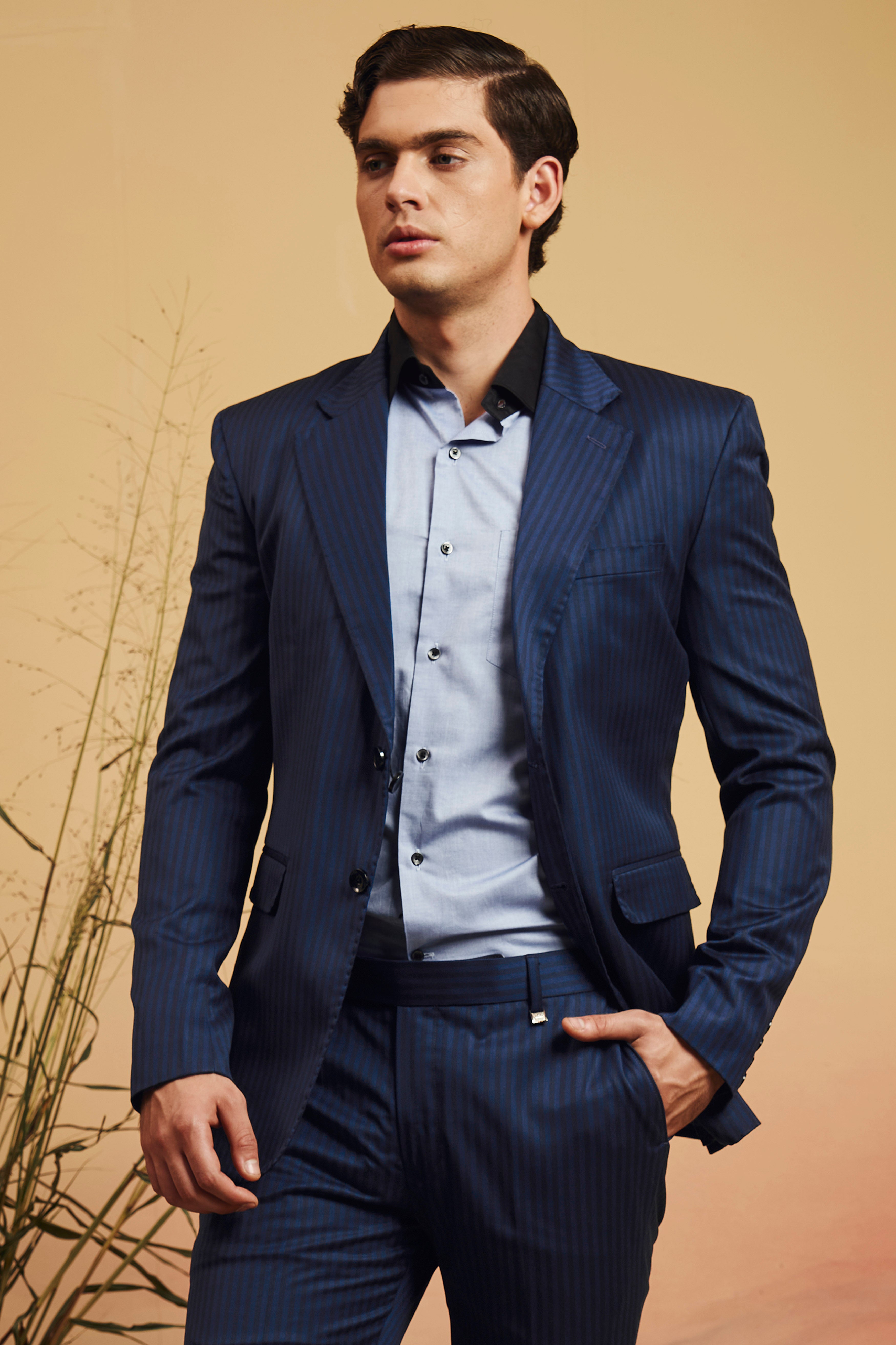 This suit is a perfect modern styles. It is reasonably priced and the color is amazing. It fits me perfectly. The striped design on it is amazing. The buttons are beautiful and neat. I am very excited to wear it. Pretty suit.