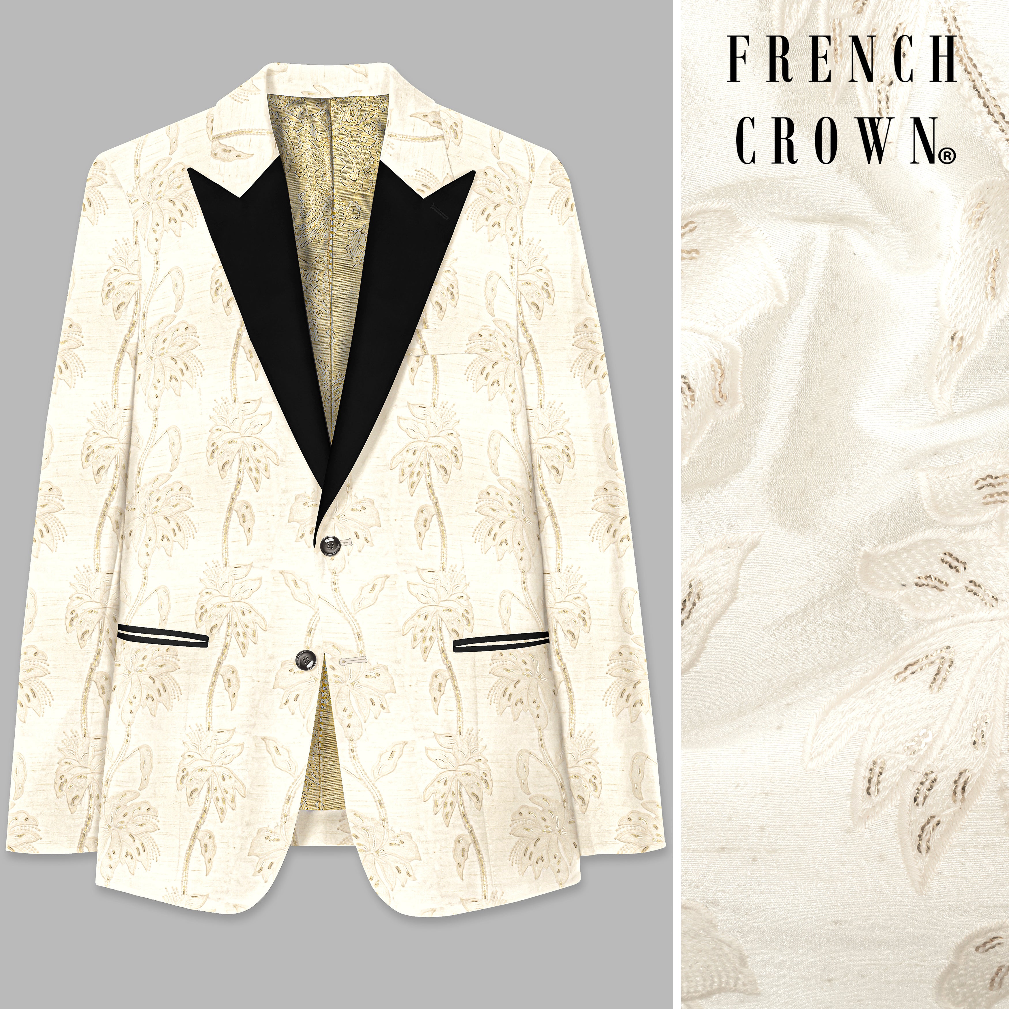 Bright White Designer Sequin And Thread Embroidered Peak Lapel Tuxedo Blazer