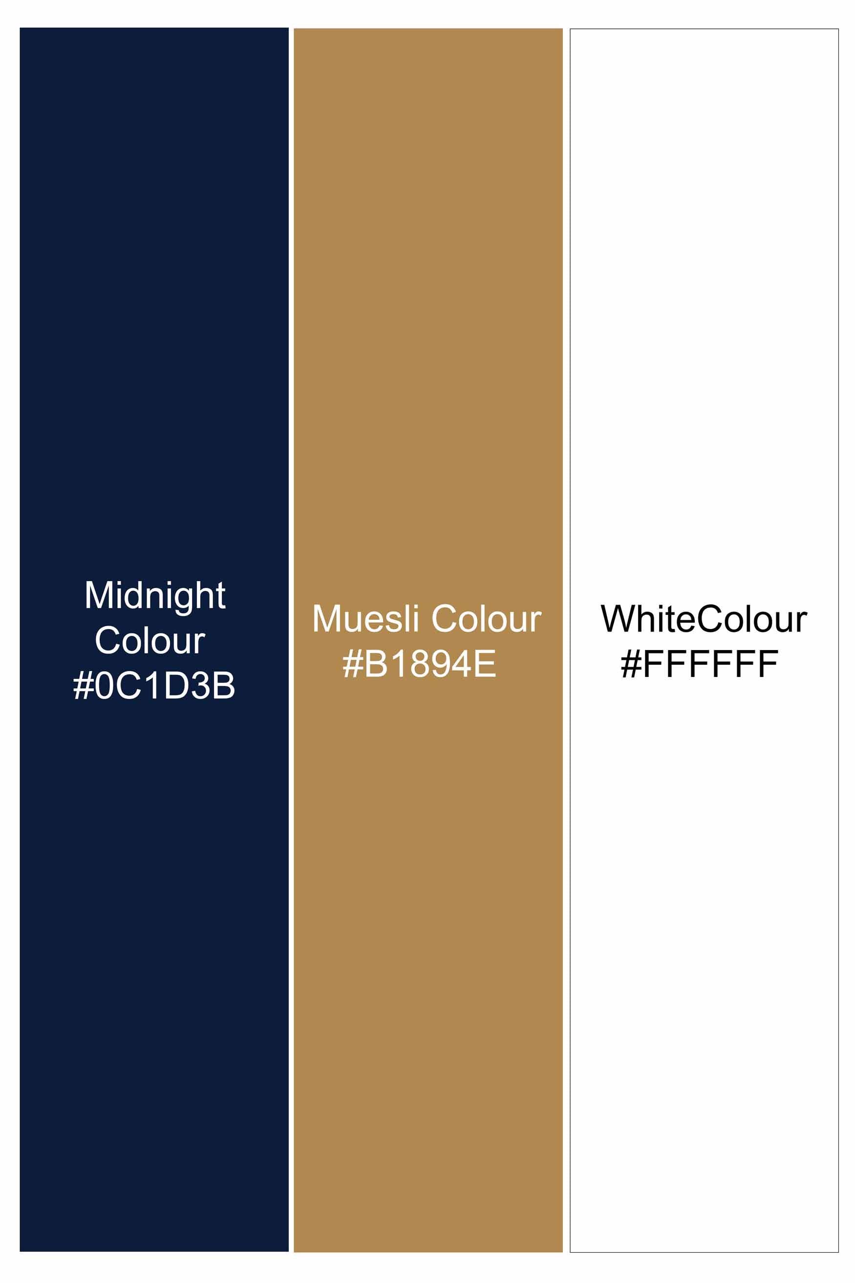 Bright White Leaves Embroidered with Muesli Brown and Midnight Blue Twill Premium Cotton Designer Shirt