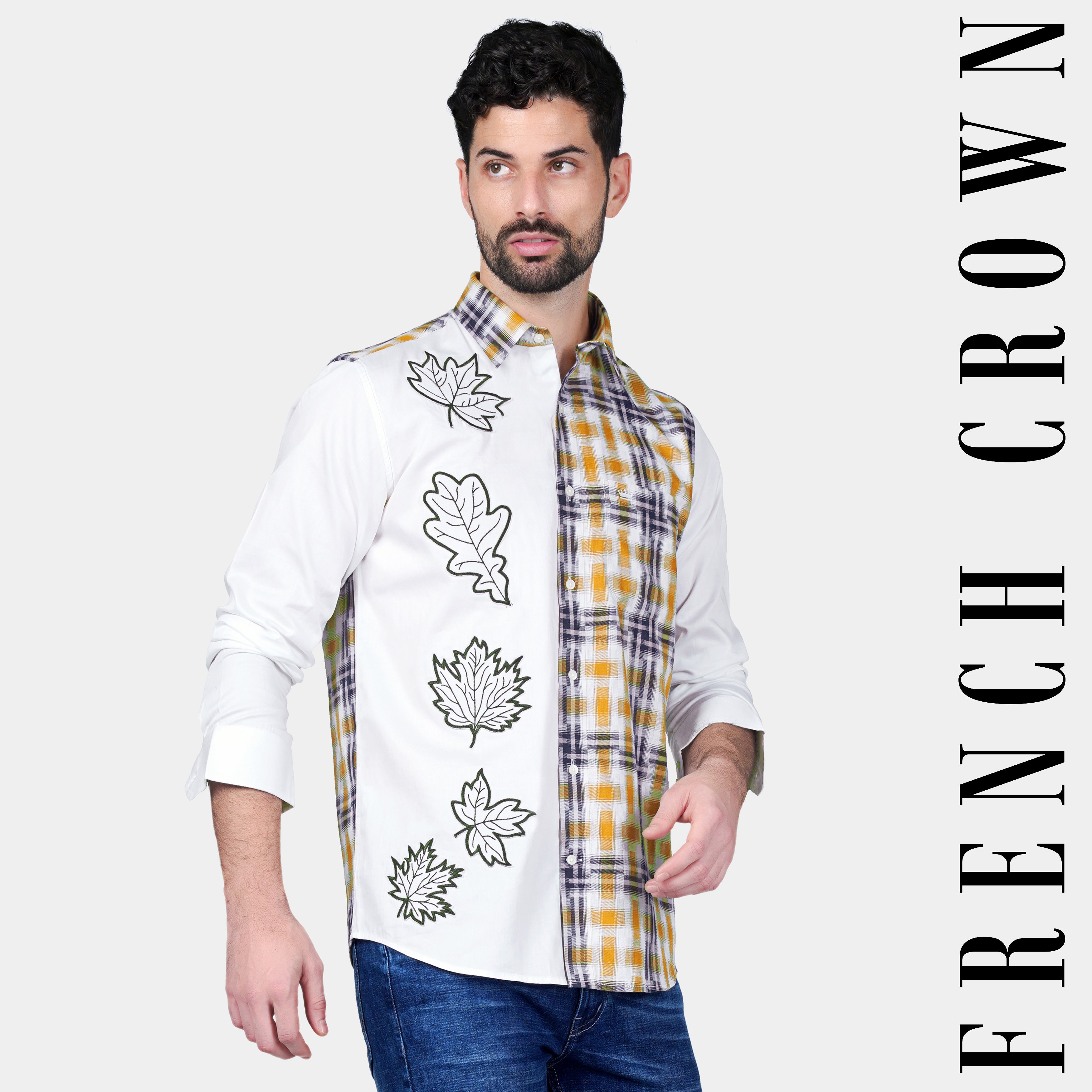 Half White Half Checkered Twill Premium Cotton ShirtHalf White Half Checkered Twill Premium Cotton Shirt