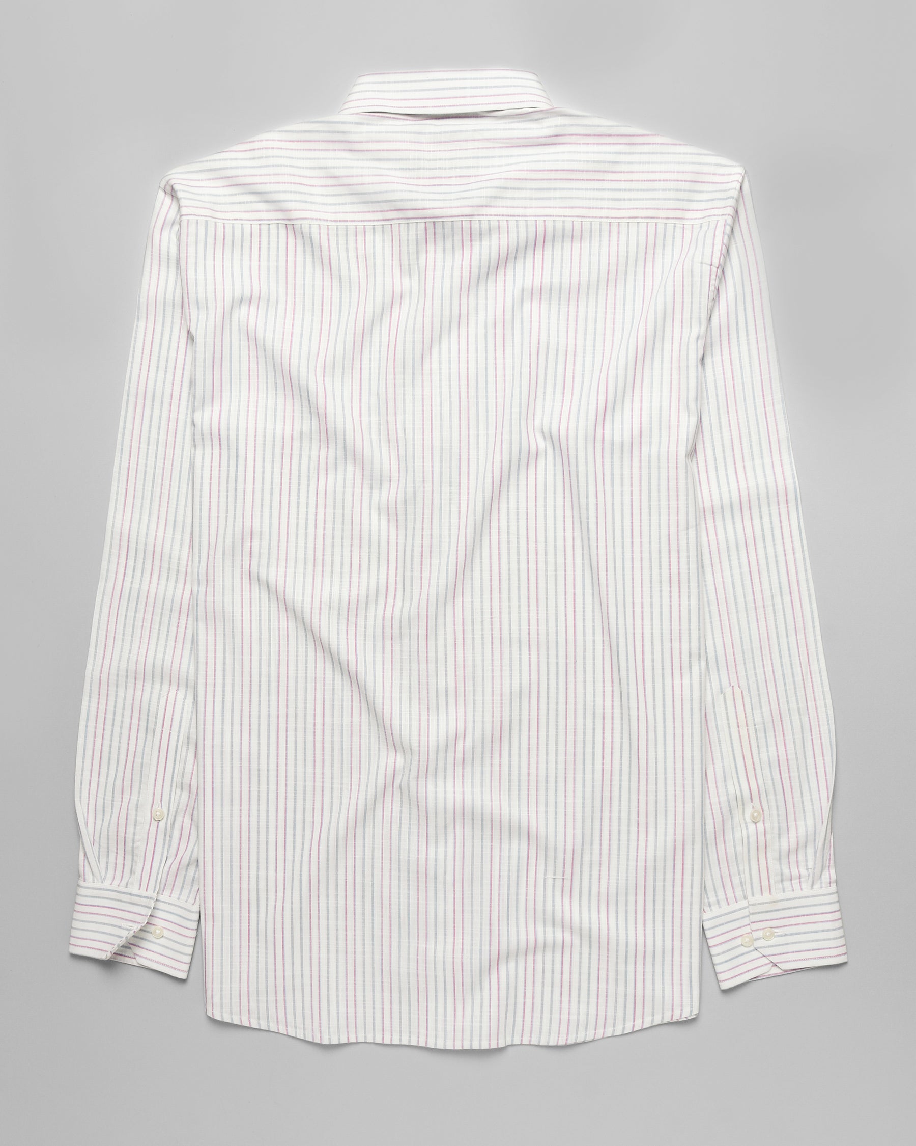 Fused collar and cuffs, collar stand and flat felled side seams provide structure and stability to all our shirts.