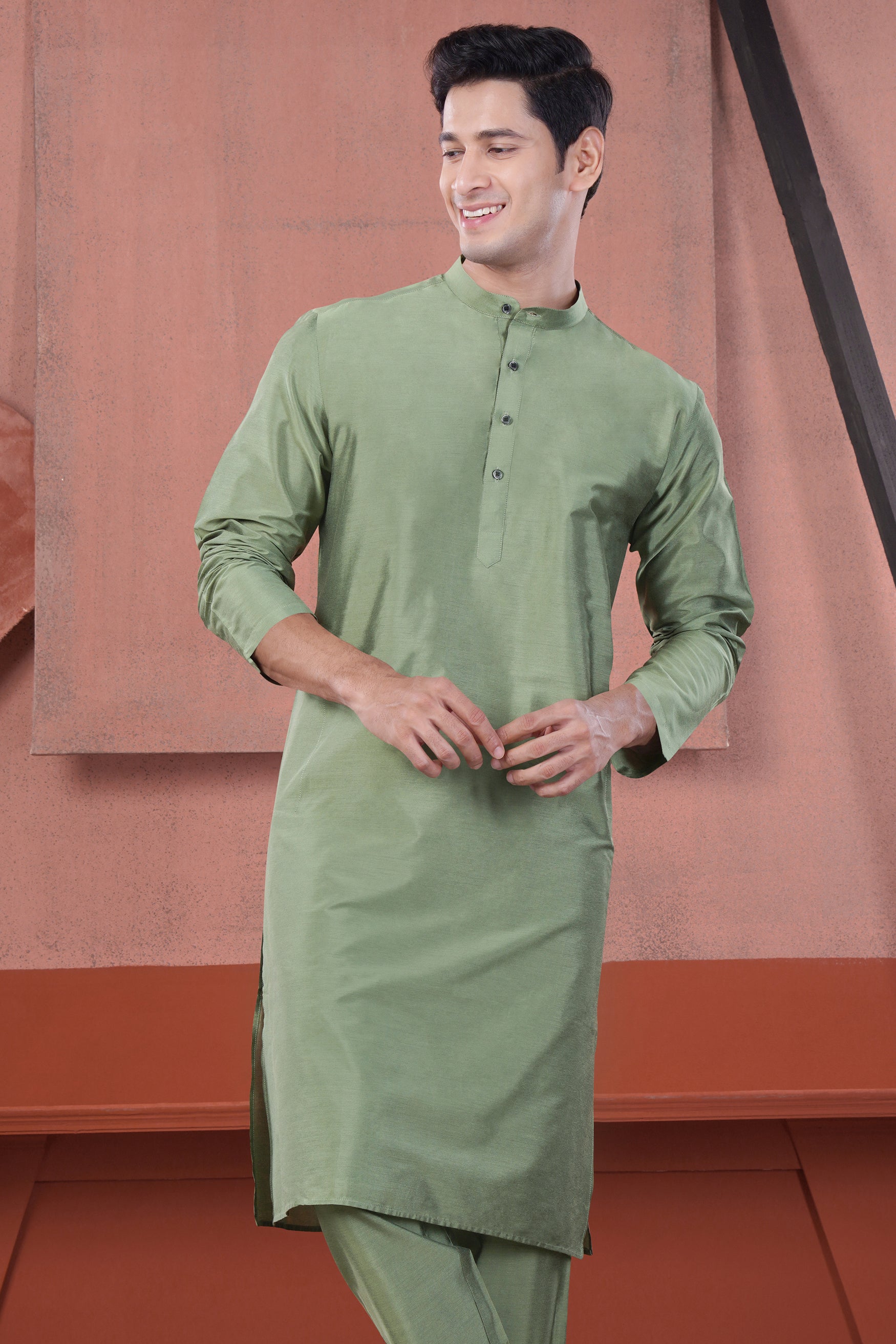 Coriander Green Subtle Sheen Super Soft Premium Cotton Kurta