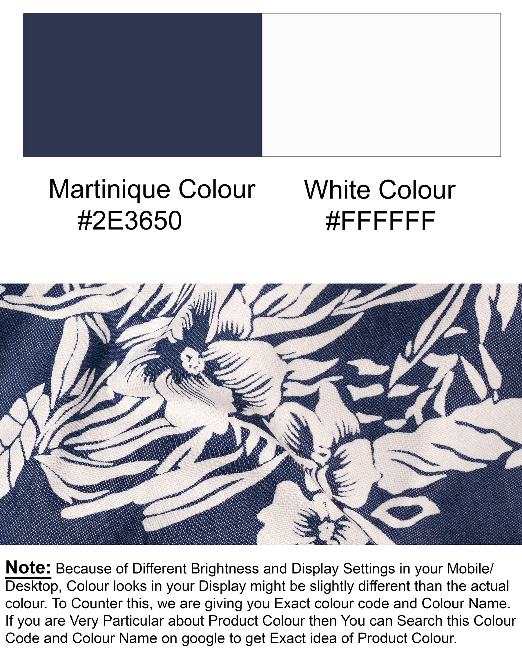 Denim Blue Flowers Printed Premium Chambray Shirt