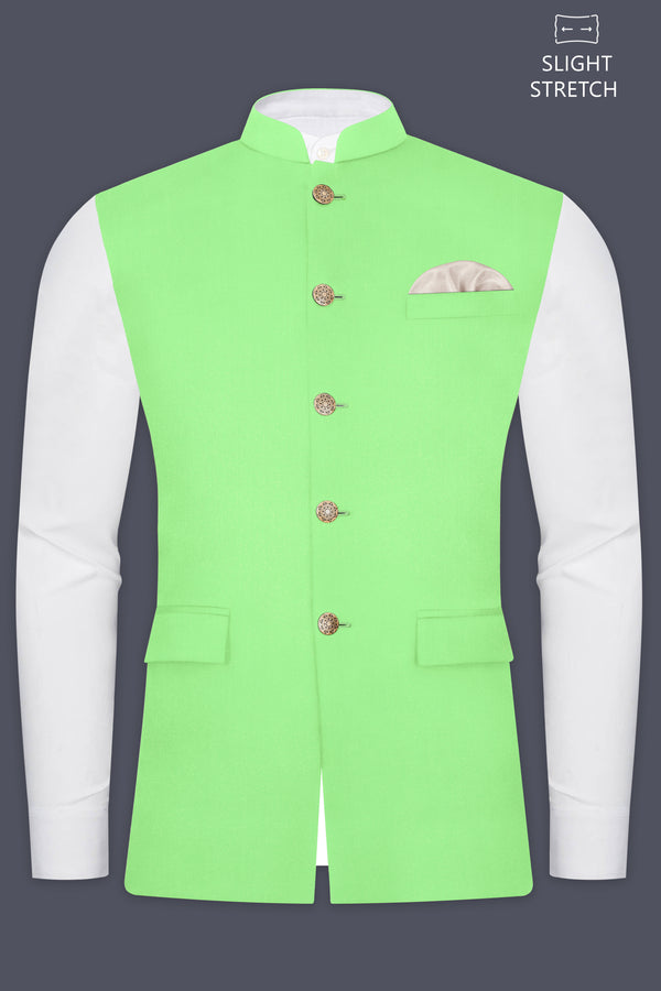 Emerald-Mint Green Solid Wool Rich Bandhgala Slight Stretch Blazer