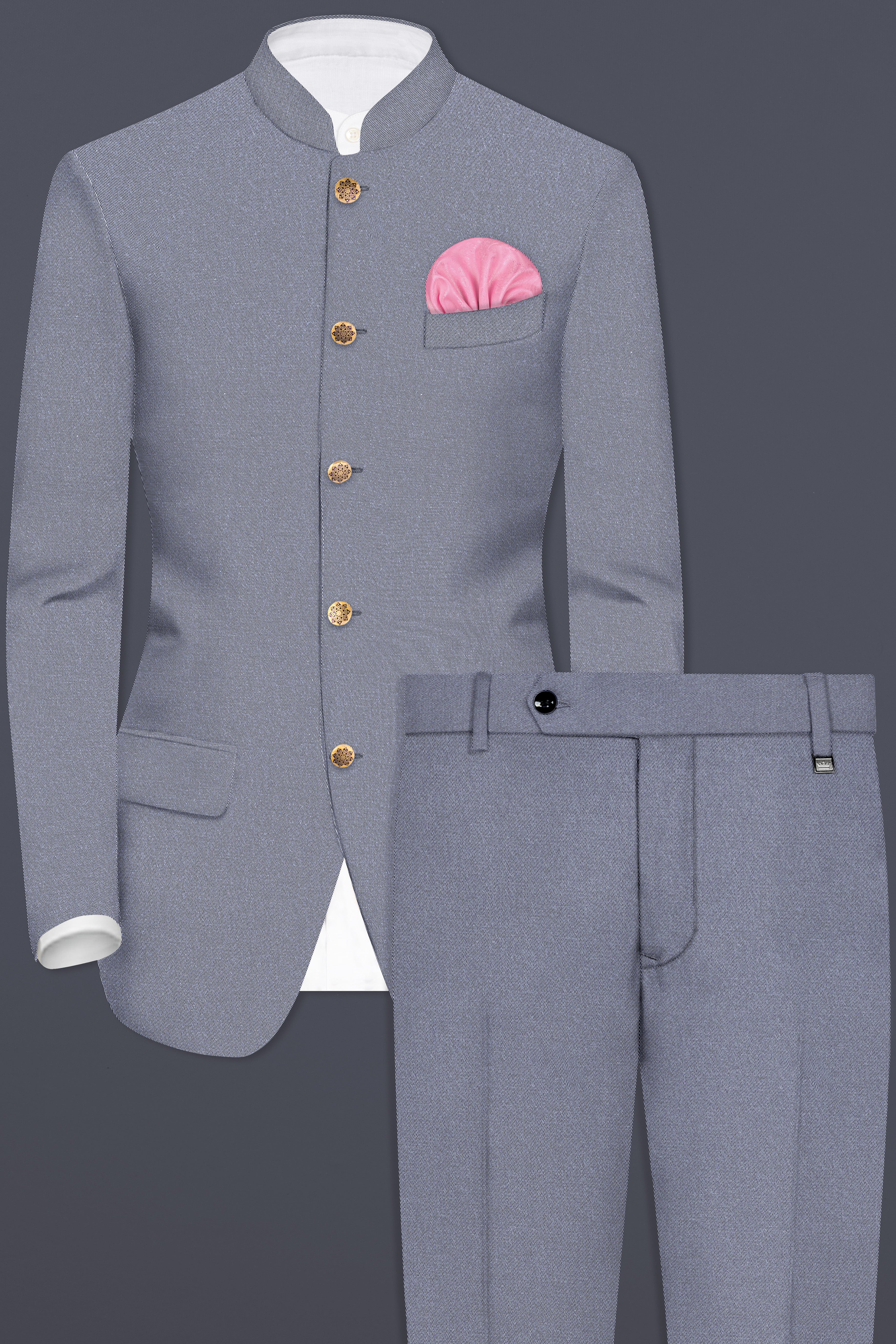 Space Blue Subtle Sheen Wool Rich Bandhgala/Mandarin SuitSpace Blue Subtle Sheen Wool Rich Bandhgala/Mandarin Suit