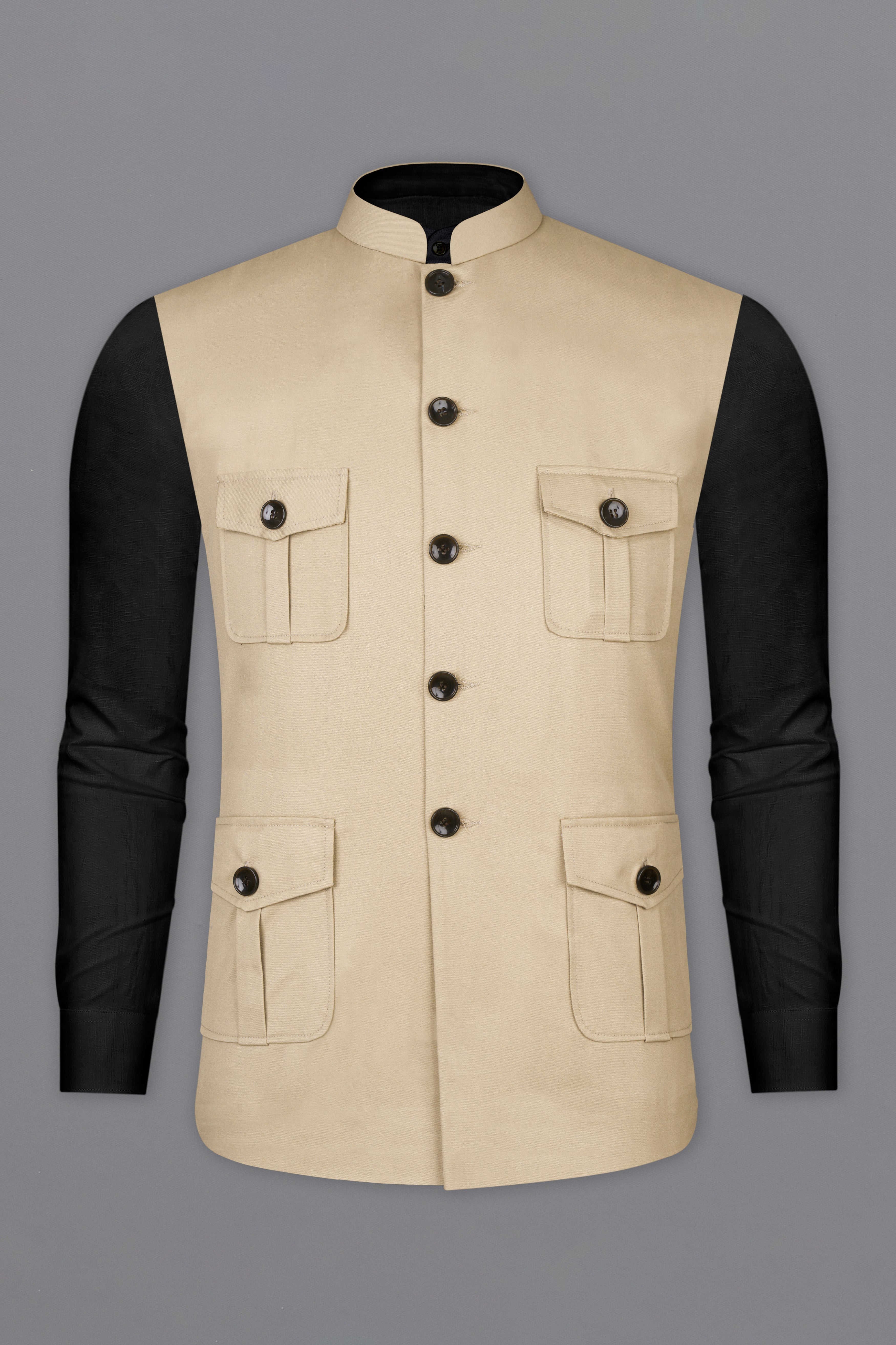 Hazelnut Cream Subtle Sheen Designer Nehru JacketHazelnut Cream Subtle Sheen Designer Nehru Jacket