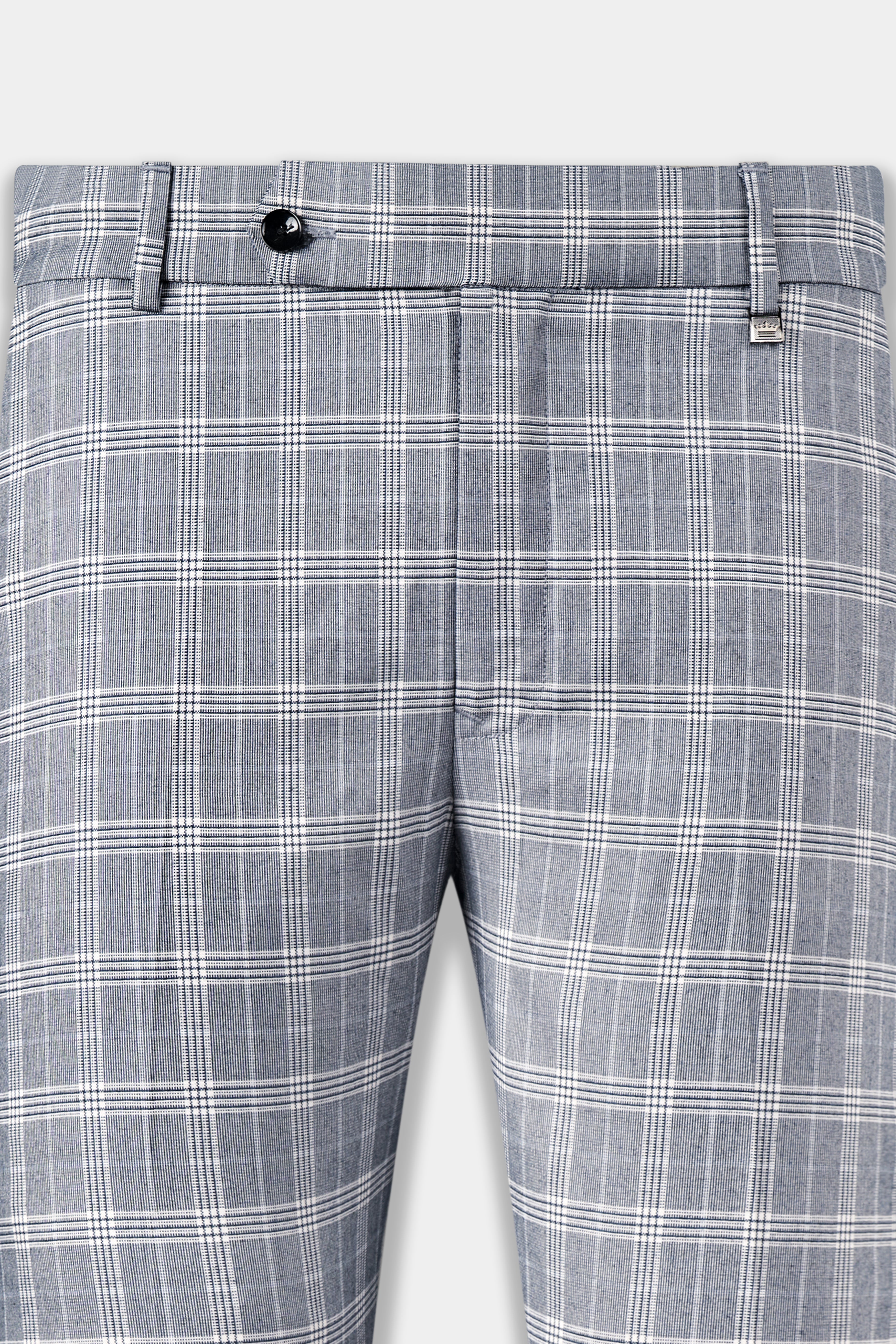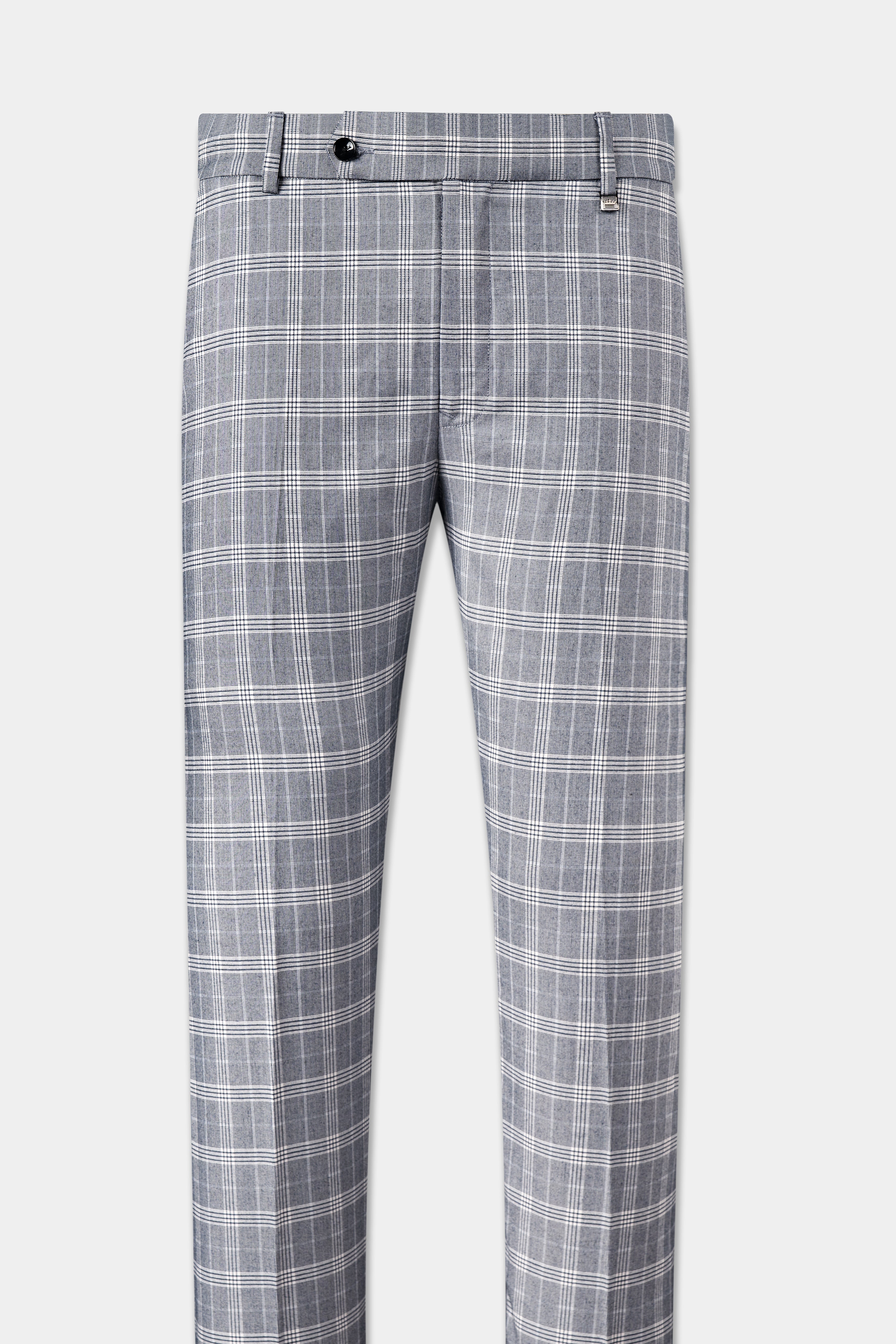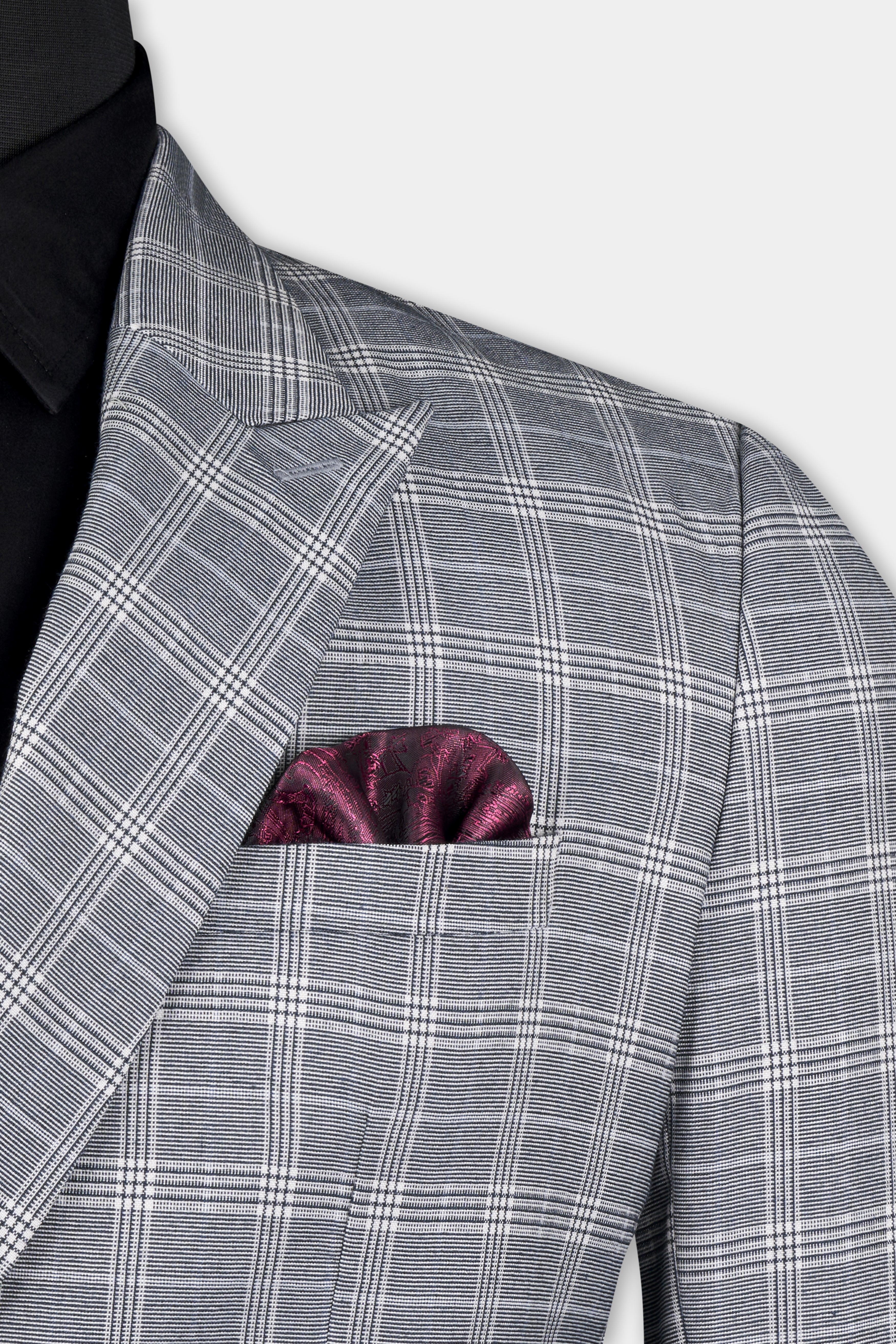 Cloud Gray Plaid Wool Rich Double Breasted SuitCloud Gray Plaid Wool Rich Double Breasted Suit