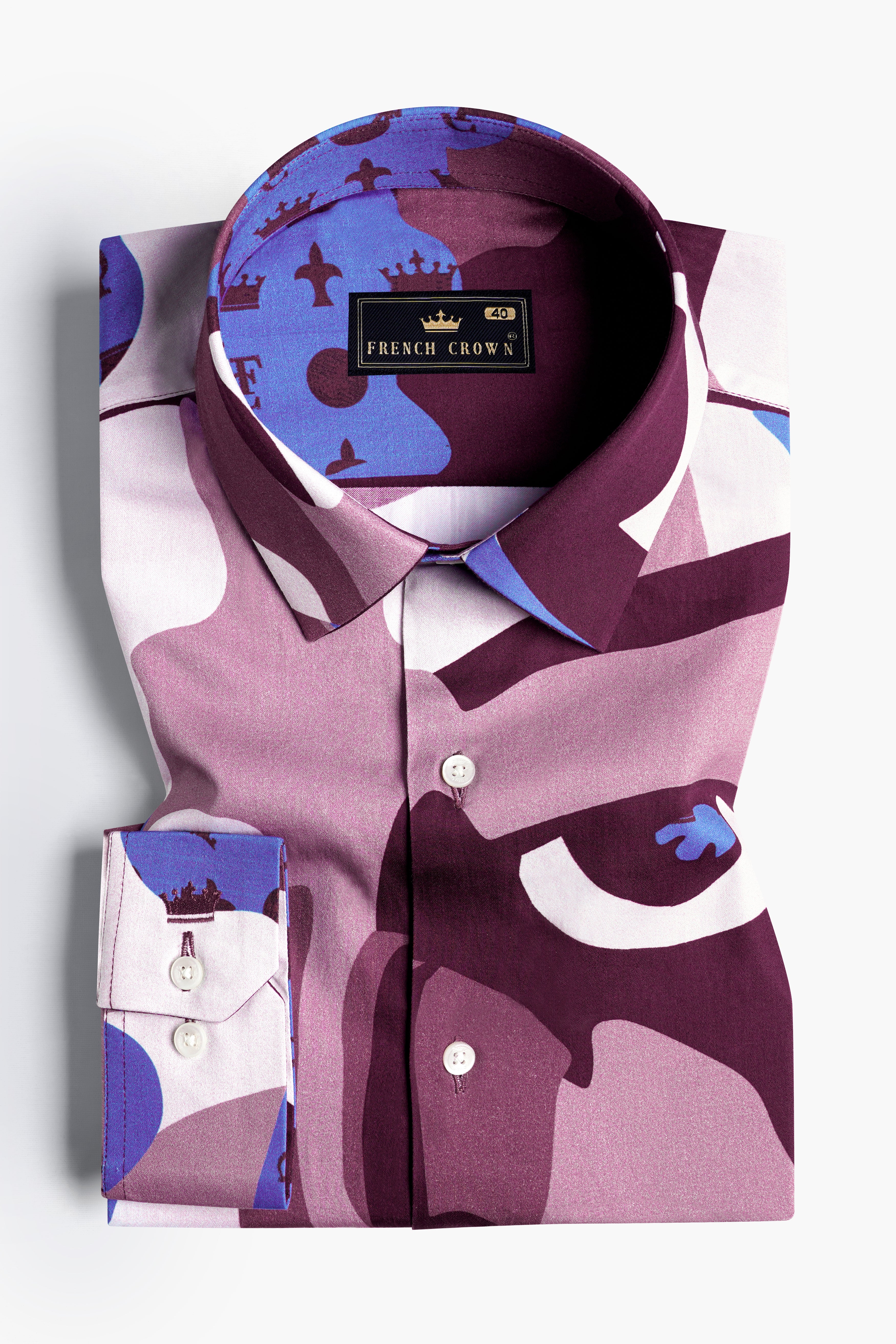 Parchment Beige with Cerise Red Striped Funky Embroidered Luxurious Linen Kurta Shirt